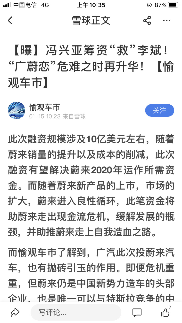 {"i18n":{"language":"zh_CN"},"detailType":1,"isChannel":false,"data":{"magic":2,"id":918545258,"tweetId":"918545258","gmtCreate":1579055974374,"gmtModify":1704338771727,"author":{"id":3540491595917127,"idStr":"3540491595917127","authorId":3540491595917127,"authorIdStr":"3540491595917127","name":"随便来个名字把","avatar":"https://static.laohu8.com/default-avatar.jpg","vip":1,"userType":1,"introduction":"","boolIsFan":false,"boolIsHead":false,"crmLevel":1,"crmLevelSwitch":0,"individualDisplayBadges":[],"fanSize":0,"starInvestorFlag":false},"themes":[],"images":[{"img":"https://static.tigerbbs.com/8c2d96a4ca0091a1b6605a0ea73a4126","width":"750","height":"1334"}],"coverImages":[{"img":"https://static.tigerbbs.com/8c2d96a4ca0091a1b6605a0ea73a4126","width":"750","height":"1334"}],"extraTitle":"","html":"<html><head></head><body> <a href=\"https://laohu8.com/S/NIO\">$蔚来(NIO)$</a>再来个100%<img src=\"https://static.tigerbbs.com/8c2d96a4ca0091a1b6605a0ea73a4126\" tg-width=\"750\" tg-height=\"1334\"></body></html>","htmlText":"<html><head></head><body> <a href=\"https://laohu8.com/S/NIO\">$蔚来(NIO)$</a>再来个100%<img src=\"https://static.tigerbbs.com/8c2d96a4ca0091a1b6605a0ea73a4126\" tg-width=\"750\" tg-height=\"1334\"></body></html>","text":"$蔚来(NIO)$再来个100%","highlighted":1,"essential":1,"paper":1,"likeSize":4,"commentSize":5,"repostSize":1,"favoriteSize":0,"link":"https://laohu8.com/post/918545258","repostId":0,"isVote":1,"tweetType":1,"viewCount":5030,"commentLimit":10,"likeStatus":false,"favoriteStatus":false,"reportStatus":false,"symbols":["NIO"],"verified":2,"subType":0,"readableState":1,"langContent":"CN","currentLanguage":"CN","warmUpFlag":false,"orderFlag":false,"shareable":true,"causeOfNotShareable":"","featuresForAnalytics":[],"commentAndTweetFlag":false,"andRepostAutoSelectedFlag":false,"upFlag":false,"length":21,"xxTargetLangEnum":"ZH_CN"},"commentList":[{"id":2067813,"commentId":"2067813","gmtCreate":1579061437017,"gmtModify":1579061437017,"authorId":3498606706555261,"author":{"id":3498606706555261,"idStr":"3498606706555261","authorId":3498606706555261,"name":"财神爷显灵","avatar":"https://static.tigerbbs.com/5aed8150a364196a925b61d5cd2aebb1","vip":1,"currentWearingBadge":{"badgeId":"e50ce593bb40487ebfb542ca54f6a561-4","templateUuid":"e50ce593bb40487ebfb542ca54f6a561","name":"明星虎友","description":"加入老虎社区2000天","bigImgUrl":"https://static.tigerbbs.com/dddf24b906c7011de2617d4fb3f76987","smallImgUrl":"https://static.tigerbbs.com/53d58ad32c97254c6f74db8b97e6ec49","grayImgUrl":"https://static.tigerbbs.com/6304700d92ad91c7a33e2e92ec32ecc1","redirectLinkEnabled":0,"hasAllocated":1,"isWearing":1,"stampPosition":0,"hasStamp":0,"allocationCount":1,"allocatedDate":"2024.02.20","individualDisplayEnabled":0,"individualDisplaySort":0,"categoryType":1001},"hat":"https://static.tigerbbs.com/f84d87792f02cf78e80ee34979fd31e5","crmLevel":2,"crmLevelSwitch":0,"individualDisplayBadges":[]},"repliedAuthorId":0,"objectId":918545258,"objectIdStr":"918545258","type":1,"supId":0,"supIdStr":"0","prevId":0,"prevIdStr":"0","content":"100%不可能,涨到13块应该还是可以的","text":"100%不可能,涨到13块应该还是可以的","html":"100%不可能,涨到13块应该还是可以的","likeSize":0,"commentSize":0,"subComments":[],"verified":10,"allocateAmount":0,"commentType":"valid","coins":0,"score":0,"disclaimerType":0},{"id":2067824,"commentId":"2067824","gmtCreate":1579061703433,"gmtModify":1579061703433,"authorId":3526032945875279,"author":{"id":3526032945875279,"idStr":"3526032945875279","authorId":3526032945875279,"name":"刘德志_0847","avatar":"https://static.tigerbbs.com/acd254792553ac34121d87c1a2d58cd5","vip":1,"crmLevel":7,"crmLevelSwitch":0,"individualDisplayBadges":[]},"repliedAuthorId":0,"objectId":918545258,"objectIdStr":"918545258","type":1,"supId":0,"supIdStr":"0","prevId":0,"prevIdStr":"0","content":"融资比销量更关键呀,必须翻一倍呀。","text":"融资比销量更关键呀,必须翻一倍呀。","html":"融资比销量更关键呀,必须翻一倍呀。","likeSize":0,"commentSize":0,"subComments":[],"verified":10,"allocateAmount":0,"commentType":"valid","coins":0,"score":0,"disclaimerType":0},{"id":2067642,"commentId":"2067642","gmtCreate":1579056233483,"gmtModify":1579056233483,"authorId":3533084678796733,"author":{"id":3533084678796733,"idStr":"3533084678796733","authorId":3533084678796733,"name":"給你壹个韭菜包","avatar":"https://static.tigerbbs.com/7f738c869c9e22180516f2e2b4baffd5","vip":1,"currentWearingBadge":{"badgeId":"e50ce593bb40487ebfb542ca54f6a561-2","templateUuid":"e50ce593bb40487ebfb542ca54f6a561","name":"资深虎友","description":"加入老虎社区1000天","bigImgUrl":"https://static.tigerbbs.com/0063fb68ea29c9ae6858c58630e182d5","smallImgUrl":"https://static.tigerbbs.com/96c699a93be4214d4b49aea6a5a5d1a4","grayImgUrl":"https://static.tigerbbs.com/35b0e542a9ff77046ed69ef602bc105d","redirectLinkEnabled":0,"hasAllocated":1,"isWearing":1,"stampPosition":0,"hasStamp":0,"allocationCount":1,"allocatedDate":"2022.06.29","individualDisplayEnabled":0,"individualDisplaySort":0,"categoryType":1001},"hat":"https://static.tigerbbs.com/b0a2963eb37c60c5d6d4a8dbcd266952","crmLevel":2,"crmLevelSwitch":0,"individualDisplayBadges":[]},"repliedAuthorId":0,"objectId":918545258,"objectIdStr":"918545258","type":1,"supId":0,"supIdStr":"0","prevId":0,"prevIdStr":"0","content":"做梦都要笑醒","text":"做梦都要笑醒","html":"做梦都要笑醒","likeSize":0,"commentSize":0,"subComments":[],"verified":10,"allocateAmount":0,"commentType":"valid","coins":0,"score":0,"disclaimerType":0},{"id":2067639,"commentId":"2067639","gmtCreate":1579056215035,"gmtModify":1579056215035,"authorId":3533084678796733,"author":{"id":3533084678796733,"idStr":"3533084678796733","authorId":3533084678796733,"name":"給你壹个韭菜包","avatar":"https://static.tigerbbs.com/7f738c869c9e22180516f2e2b4baffd5","vip":1,"currentWearingBadge