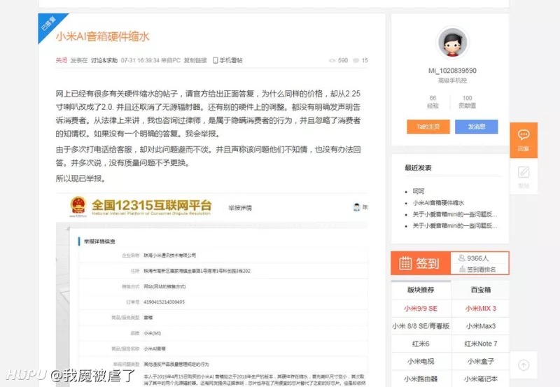贴吧有米粉发帖被删,这其实真不是小事。无论哪个厂商,这样做就是虚假宣传。