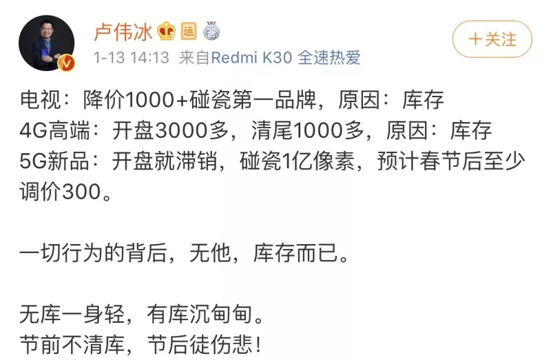 卢伟冰:荣耀智慧屏为了清库存故意碰瓷小米电视