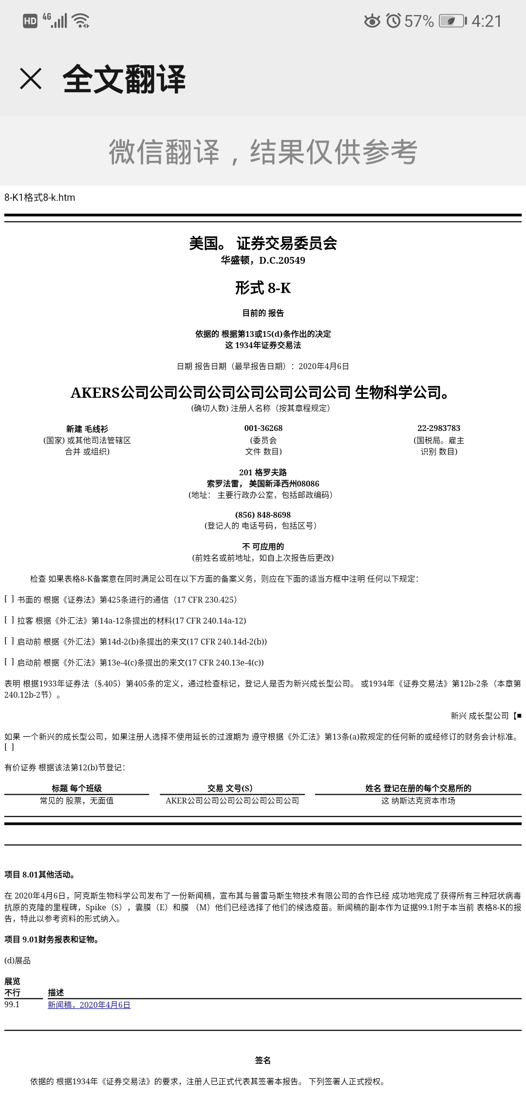 在 2020年4月6日,阿克斯生物科学公司发布了一份新闻稿,宣布其与普雷马斯生物技术有限公司的合作已经 成功地完成了获得所有三种冠状病毒抗原的克隆的里程碑,Spike(S),囊膜(E)和膜 (M)他们已经选择了他们的候选疫苗。新闻稿的副本作为证据99.1附于本当前 表格8-K的报告,特此以参考资料的形式纳