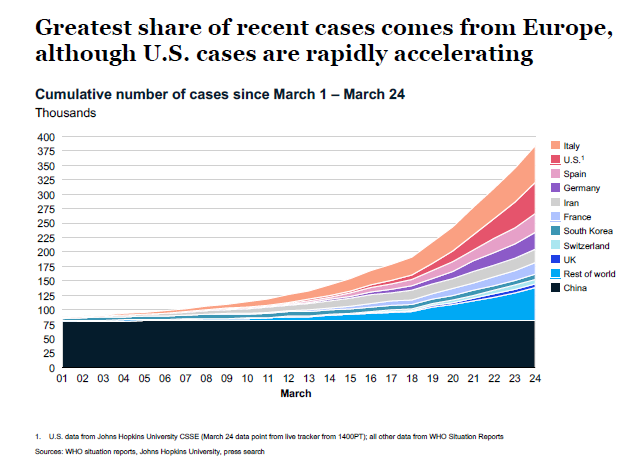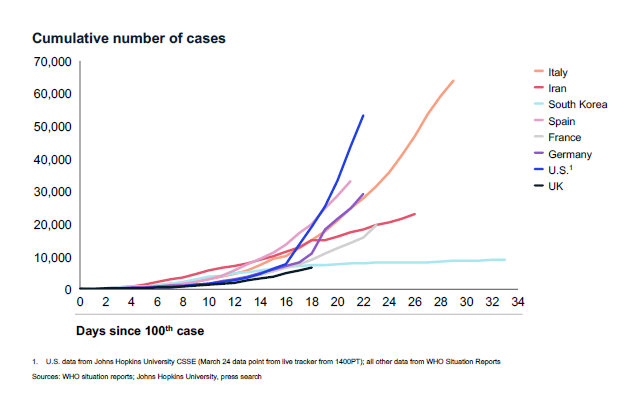 今年新冠病毒来势汹汹,虽然我们通过两月的努力已经基本控制,但上个月病毒在海外的蔓延速度极快,美国在过去的两周已经有超过10万人的确诊病例,已经超过意大利和西班牙成为全球确证人数最多的国家。3月9日的原油大降价和新冠病毒的蔓延给全球经济和金融市场重重的一击,欧洲股市和美国股市已经跌了超过20%,全球的各知名大型企业受到了重创。 波音的股价一度跌超70%,后因美国政府救市方案出台后才回升20%。 昨日虽有一定回升,但·目前疫情还未被完全控制,疫苗也还在研发中,金融市场目前波动性大,投资者对于接下来的经济发展十分担忧。 我们团队也对最近的情况进行了深度研究,同时结合麦肯锡咨询最近发布的报告做出了一些预测。 $SP500指数主连(ESmain)$