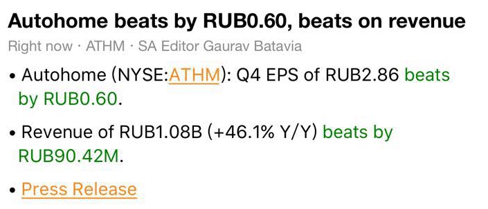 汽车之家$(ATHM)$,财报出来喽,Q4的EPS和营收都超出预期,盘前已经涨起来了~
