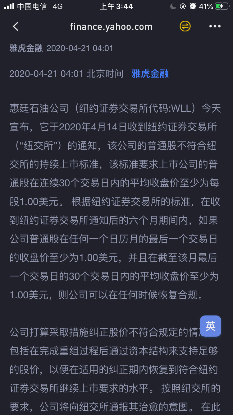 {"i18n":{"language":"zh_CN"},"detailType":1,"isChannel":false,"data":{"magic":2,"id":922591578,"tweetId":"922591578","gmtCreate":1587584693394,"gmtModify":1704364873451,"author":{"id":3479335420294720,"idStr":"3479335420294720","authorId":3479335420294720,"authorIdStr":"3479335420294720","name":"永远不要追高","avatar":"https://static.laohu8.com/default-avatar.jpg","vip":1,"userType":1,"introduction":"","boolIsFan":false,"boolIsHead":false,"crmLevel":2,"crmLevelSwitch":0,"individualDisplayBadges":[],"fanSize":109,"starInvestorFlag":false},"themes":[],"images":[{"img":"https://static.tigerbbs.com/a92c5792722287f6e8105f19750a46af","width":"750","height":"1334"}],"coverImages":[{"img":"https://static.tigerbbs.com/a92c5792722287f6e8105f19750a46af","width":"750","height":"1334"}],"extraTitle":"","html":"<html><head></head><body> <a href=\"https://laohu8.com/S/WLL\">$Whiting Petroleum Corp(WLL)$</a>这是要避免退市,冲上一块了今晚<img src=\"https://static.tigerbbs.com/a92c5792722287f6e8105f19750a46af\" tg-width=\"750\" tg-height=\"1334\"></body></html>","htmlText":"<html><head></head><body> <a href=\"https://laohu8.com/S/WLL\">$Whiting Petroleum Corp(WLL)$</a>这是要避免退市,冲上一块了今晚<img src=\"https://static.tigerbbs.com/a92c5792722287f6e8105f19750a46af\" tg-width=\"750\" tg-height=\"1334\"></body></html>","text":"$Whiting Petroleum Corp(WLL)$这是要避免退市,冲上一块了今晚","highlighted":1,"essential":1,"paper":1,"likeSize":2,"commentSize":13,"repostSize":0,"favoriteSize":0,"link":"https://laohu8.com/post/922591578","repostId":0,"isVote":1,"tweetType":1,"viewCount":4165,"commentLimit":10,"likeStatus":false,"favoriteStatus":false,"reportStatus":false,"symbols":["WLL"],"verified":2,"subType":0,"readableState":1,"langContent":"CN","currentLanguage":"CN","warmUpFlag":false,"orderFlag":false,"shareable":true,"causeOfNotShareable":"","featuresForAnalytics":[],"commentAndTweetFlag":false,"andRepostAutoSelectedFlag":false,"upFlag":false,"length":56,"xxTargetLangEnum":"ZH_CN"},"commentList":[{"id":2369841,"commentId":"2369841","gmtCreate":1587585917586,"gmtModify":1587585917586,"authorId":3549086308497412,"author":{"id":3549086308497412,"idStr":"3549086308497412","authorId":3549086308497412,"name":"老贾这个骗子","avatar":"https://static.tigerbbs.com/806ad604d58543388f3cdeae54228903","vip":1,"currentWearingBadge":{"badgeId":"35ec162348d5460f88c959321e554969-3","templateUuid":"35ec162348d5460f88c959321e554969","name":"传说交易员","description":"证券或期货账户累计交易次数达到300次","bigImgUrl":"https://static.tigerbbs.com/656db16598a0b8f21429e10d6c1cb033","smallImgUrl":"https://static.tigerbbs.com/03f10910d4dd9234f9b5702a3342193a","grayImgUrl":"https://static.tigerbbs.com/0c767e35268feb729d50d3fa9a386c5a","redirectLinkEnabled":0,"hasAllocated":1,"isWearing":1,"stampPosition":0,"hasStamp":0,"allocationCount":1,"allocatedDate":"2021.12.21","exceedPercentage":"93.72%","individualDisplayEnabled":0,"individualDisplaySort":0,"categoryType":1100},"hat":"https://static.tigerbbs.com/02aa29c2dc9ef542378534f87cda3558","crmLevel":5,"crmLevelSwitch":0,"individualDisplayBadges":[]},"repliedAuthorId":0,"objectId":922591578,"objectIdStr":"922591578","type":1,"supId":0,"supIdStr":"0","prevId":0,"prevIdStr":"0","content":"这个不会破产了?","text":"这个不会破产了?","html":"这个不会破产了?","likeSize":0,"commentSize":5,"subComments":[{"id":2369852,"commentId":"2369852","gmtCreate":1587586303325,"gmtModify":1587586303325,"authorId":3479335420294720,"author":{"id":3479335420294720,"idStr":"3479335420294720","authorId":3479335420294720,"name":"永远不要追高","avatar":"https://static.laohu8.com/default-avatar.jpg","vip":1,"crmLevel":2,"crmLevelSwitch":0,"individualDisplayBadges":[]},"repliedAuthorId":3549086308497412,"repliedAuthor":{"id":3549086308497412,"idStr":"3549086308497412","authorId":3549086308497412,"name":"老贾这个骗子","avatar":"https://static.tigerbbs.com/806ad604d58543388f3cdeae54228903","vip":1,"currentWearingBadge":{"badgeId":"35ec162348d5460f88c959321e554969-3","templateUuid":"35ec162348d5460f88c959321e554969","name":"传说交易员","description":"证券或期货账户累计交易次数达到300次","bigImgUrl":"https://static.tigerbbs.com/656db16598a0b8f21429e10d6c1cb033","smallImgUrl":"https://static.tigerbbs.com/03f10910d4dd9234f9b5702a3342193a","grayImgUrl":"https://static.tigerbbs.com/0c767e35268feb729d50d3fa9a386c5a","redirectLinkEnabled":0,"hasAllocated":1,"isWearing":1,"stampPosition":0,"hasStamp":0,"allocationCount":1,"allocatedDate":"2021.12.21","exceedPercentage":"93.72%","individualDisplayEnabled":0,"individualDisplaySort":0,"categoryType":1100},"hat":"https://static.tigerbbs.com/02aa29c2dc9ef542378534f87cda3558","crmLevel":5,"crmLevelSwitch":0,"individualDisplayBadges":[]},"objectId":922591578,"objectIdStr":"922591578","type":1,"supId":2369841,"supIdStr":"2369841","prevId":2369849,"prevIdStr":"2369849","content":"怕就不要买,买了就不要怕","text":"怕就不要买,买了就不要怕","html":"怕就不要买,买了就不要怕","disclaimerType":0},{"id":2369851,"commentId":"2369851","gmtCreate":1587586297794,"gmtModify":1587586297794,"authorId":3549086308497412,"author":{"id":3549086308497412,"idStr":"3549086308497412","authorId":3549086308497412,"name":"老贾这个骗子","avatar":"https://static.tigerbbs.com/806ad604d58543388f3cdeae54228903","vip":1,"currentWearingBadge":{"badgeId":"35ec162348d5460f88c959321e554969-3","templateUuid":"35ec162348d5460f88c959321e554969","name":"传说交易员","description":"证券或期货账户累计交易次数达到300次","bigImgUrl":"https://static.tigerbbs.com/656db16598a0b8f21429e10d6c1cb033","smallImgUrl":"https://static.tigerbbs.com/03f10910d4dd9234f9b5702a3342193a","grayImgUrl":"https://static.tigerbbs.com/0c767e35268feb729d50d3fa9a386c5a","redirectLinkEnabled":0,"hasAllocated":1,"isWearing":1,"stampPosition":0,"hasStamp":0,"allocationCount"