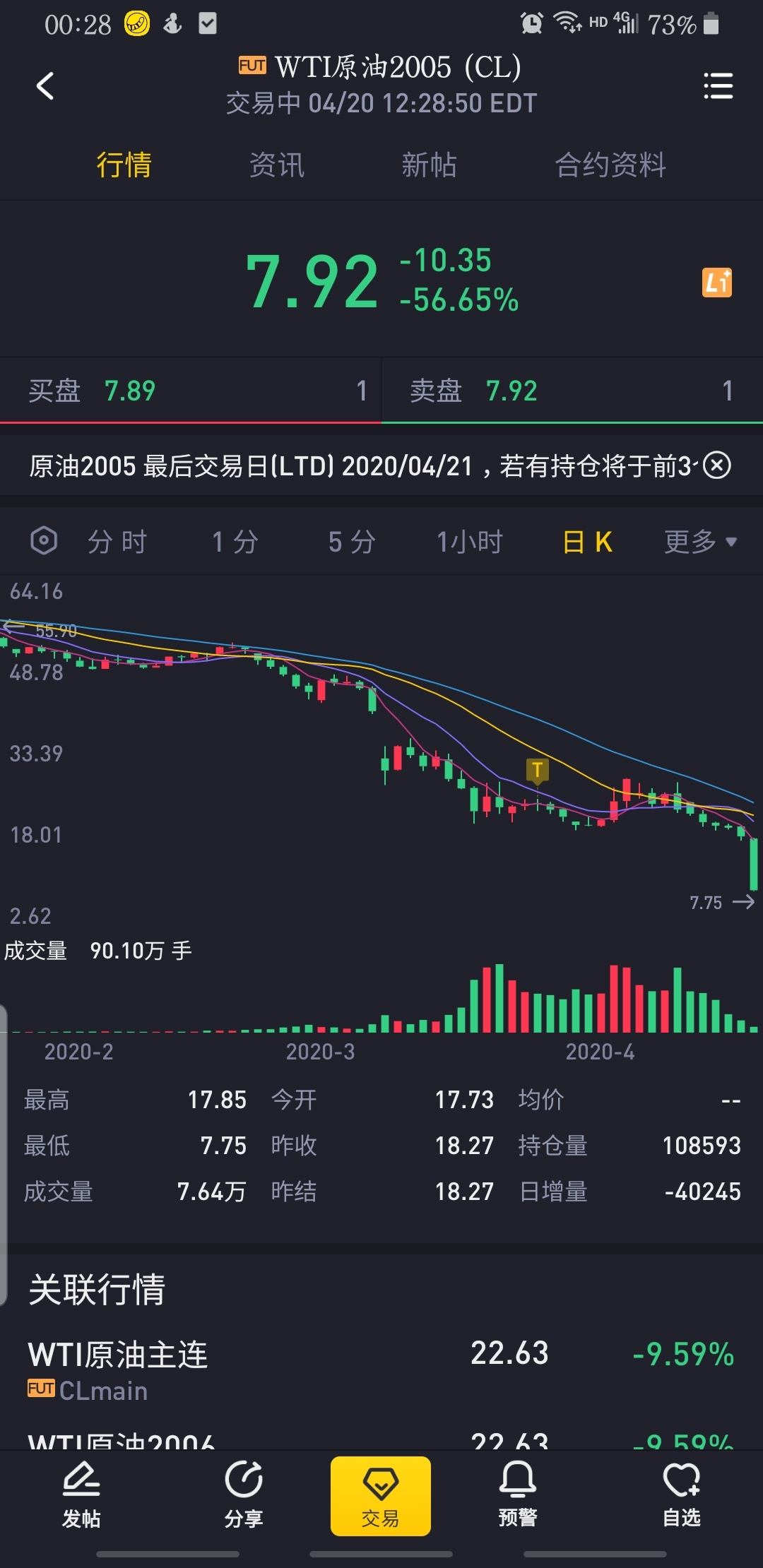 $WTI原油2005(CL2005)$不知道有多少人听了我的话即使止损,也许没有,7美元的原油足够爆仓多少次?商品确实有价值属性,但就目前的原油来说,产能完全过剩,全球面临着多产出来的原油没地方放了,这个时候的石油公司包括中石油都在大面积关停采油井。我有一个想法,全国所有油井全部关闭,大幅采购国际原油市场原油,原油储罐装不了了,就往已经废弃的油田里面灌,废弃油田也是有储存属性的,把玉门,大庆等各大油田灌满。这是千载难逢的好机会,毕竟原油是不可再生能源。河蚌相争,渔翁得利。我们中国就做一次渔翁!让废弃的油田焕发新生,目前的大庆很多井都是100桶打上来97桶水,用水去刷洗油层上附着在岩石泥土缝隙中的原油,我们这次就给他灌满。国际市场有多少原油我们买多少[开心]