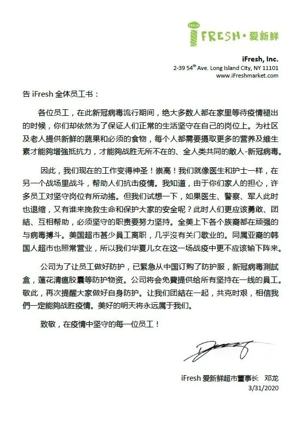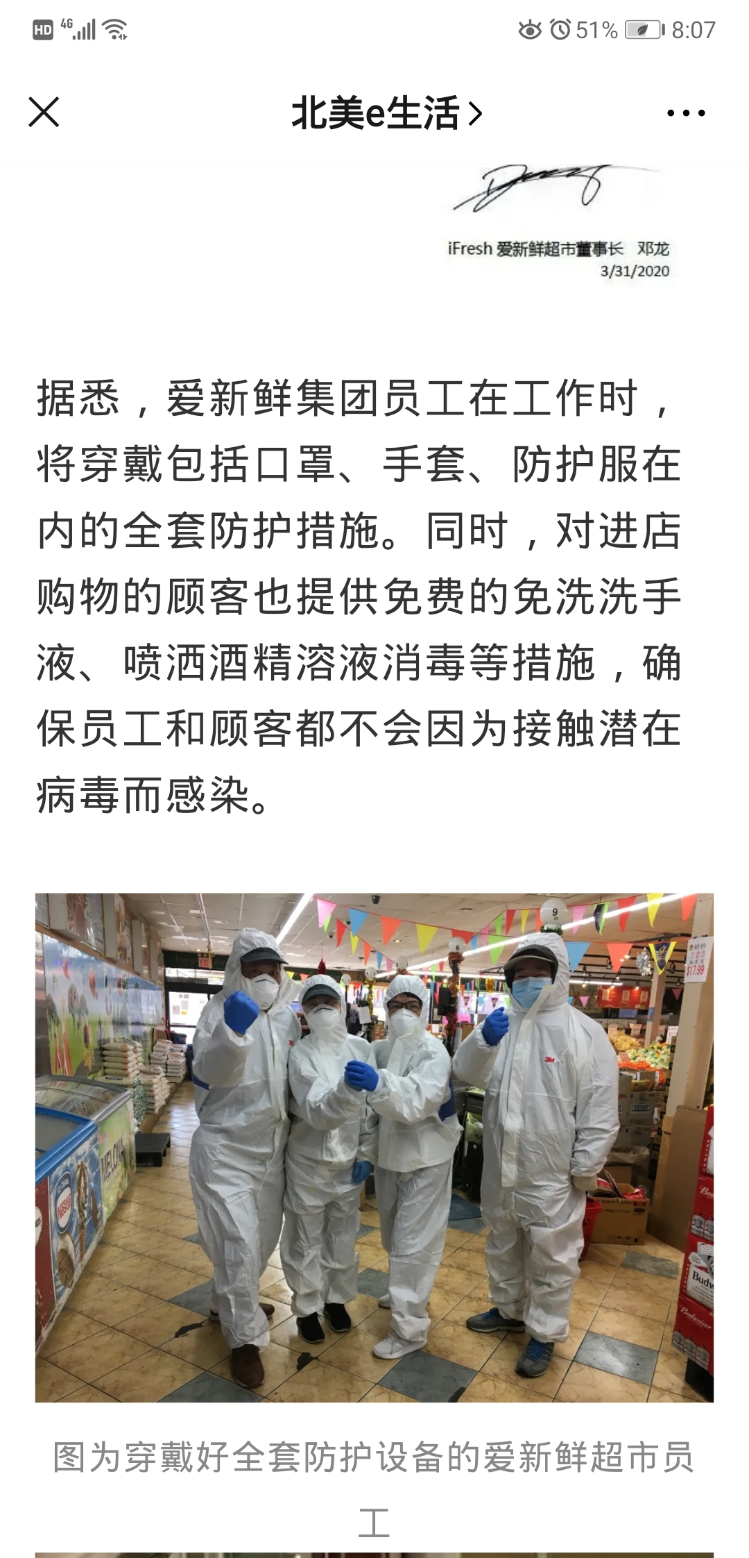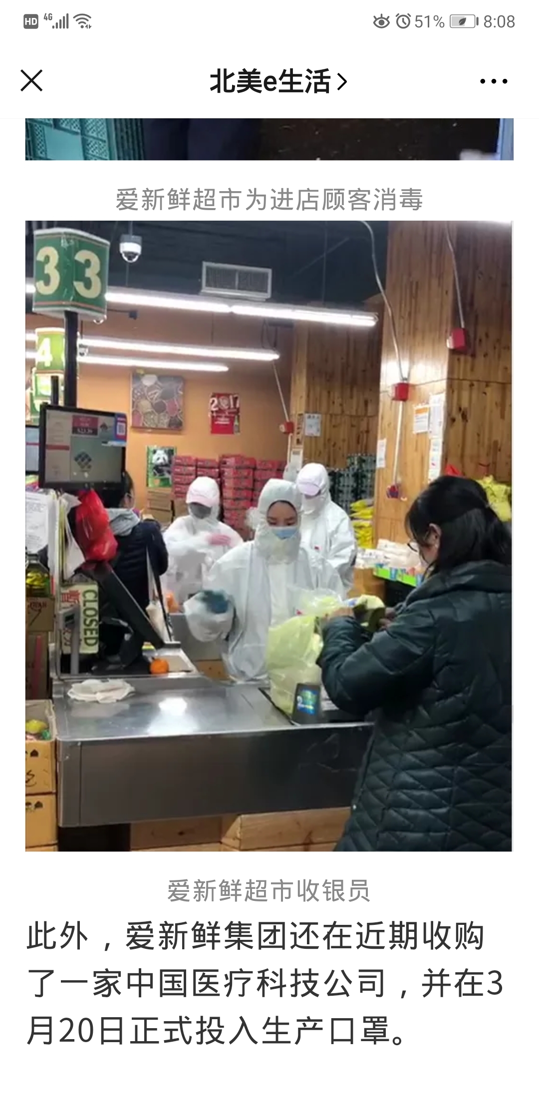 爱新鲜集团在上周还订购了一条N95防护口罩的生产线,近期将会投入生产N95口罩。这些N95口罩在出厂后也将运送至美国,帮助华人社区抗击疫情。