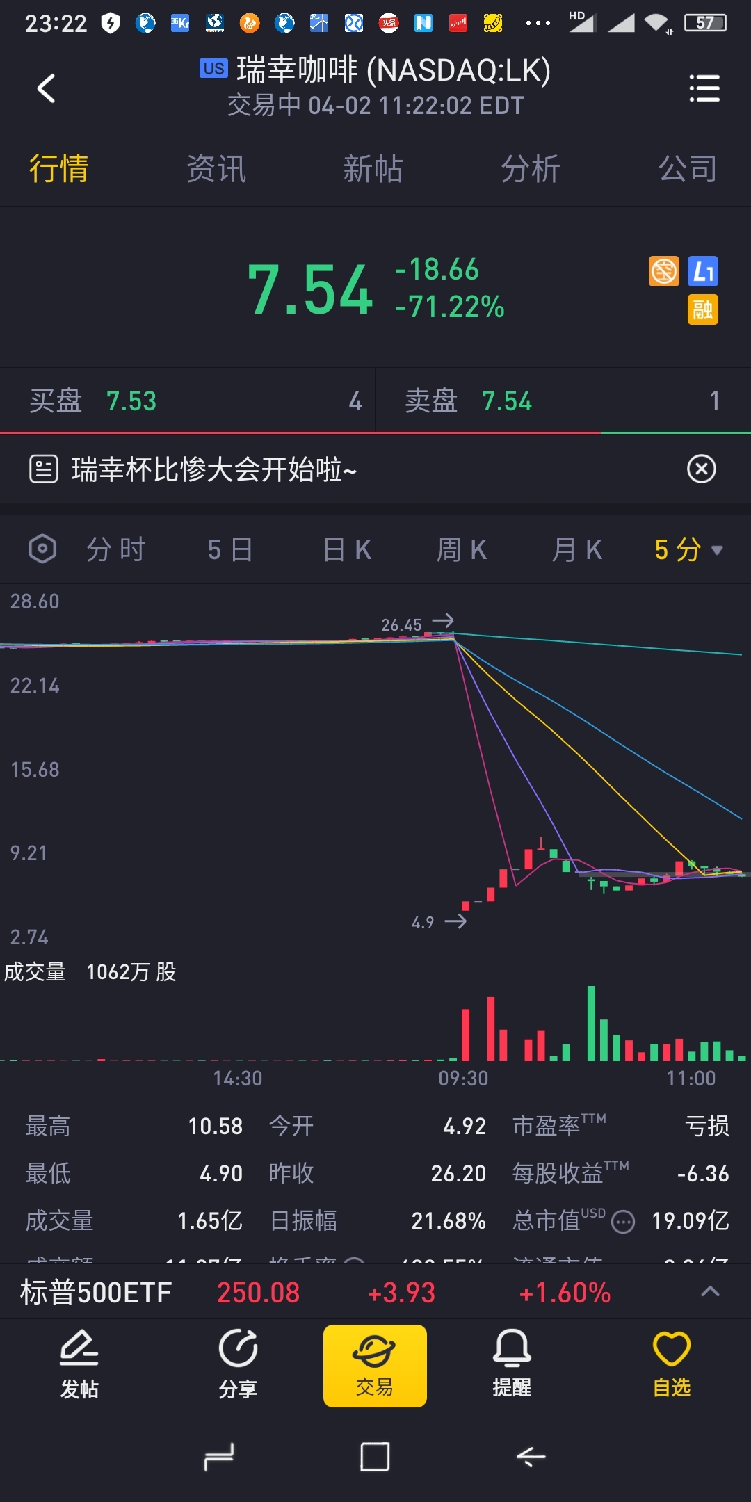 这种巨雷股做空一旦失误将是毁灭性损失,有可能本金会变0,还是做多保险,就算失败大不了本金受损但不会变0。