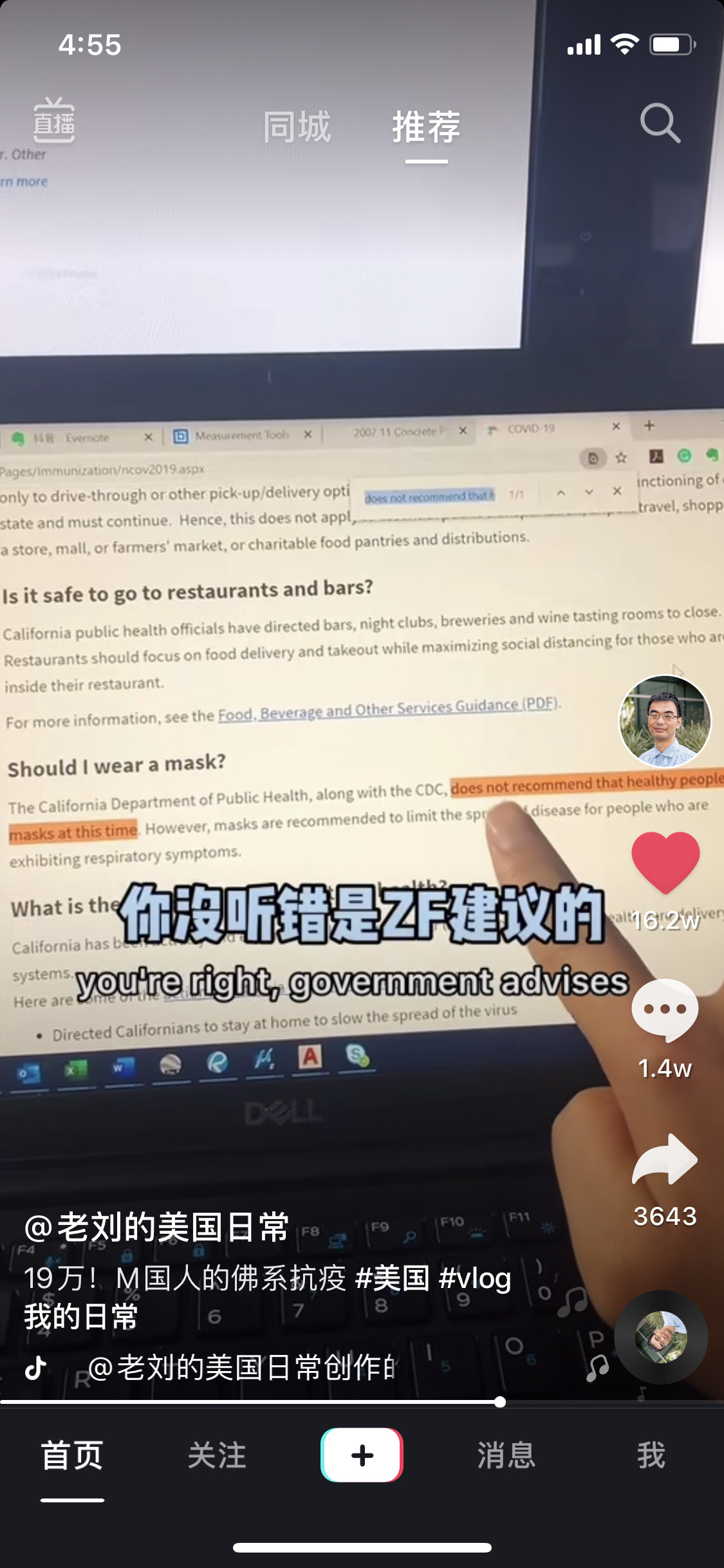 美国zf建议,不推荐使用口罩,