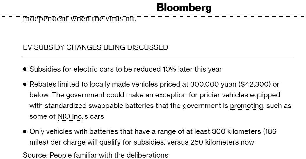 彭博社:知情人士透露了今年的新能源车补贴方案。