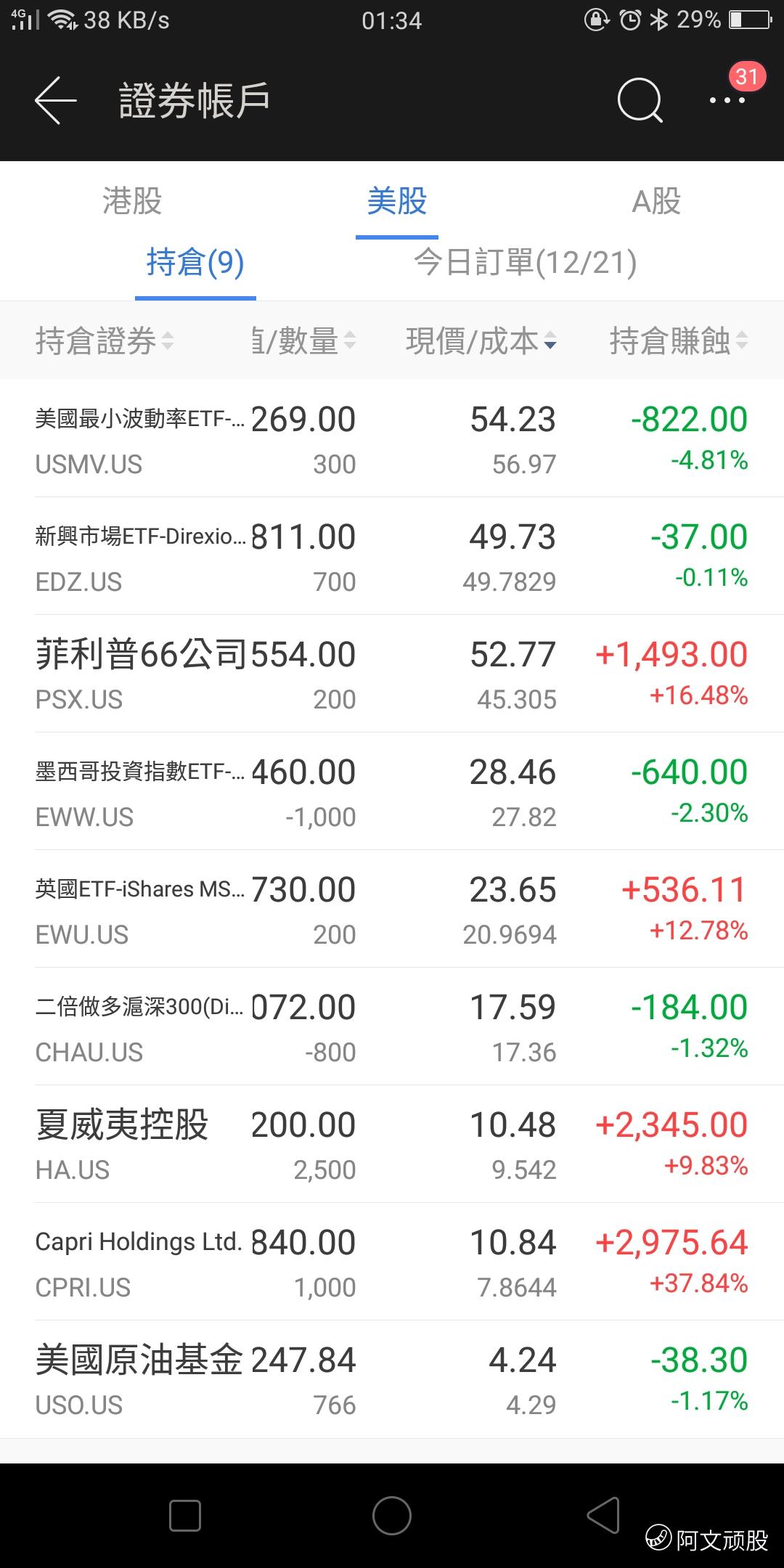 恐慌昨天碰到停利价就卖出了,今天做空摊平新兴市场和吃了兴奋剂的墨西哥,也没忍住加码夏威夷航空,晚上应该不会再爬起来看收盘了,目前美股持有如下,还是认为会有一波再次修正,自己手上持股买卖点价位不要问我,我只能对自己持股负责,我绝对不可能百分百对的,所以不想承担买卖责任,但交流我很乐意,祝大家健康又赚钱