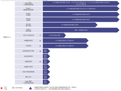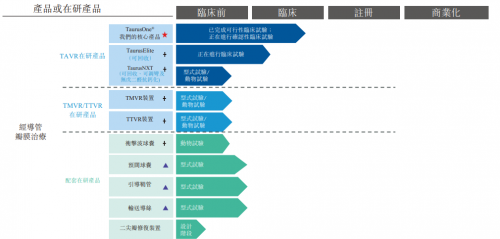 沛嘉医疗的核心产品线包括用于主动脉瓣、二尖瓣及三尖瓣的经导管器械。TaurusOne是其第一代TAVR产品,目前正在完成确认性临床试验。该产品预期将在今年第4季度或2021年第1季度取得国家药监局批准,推出上市。除了TaurusOne,沛嘉医疗的研发管线还包括具有创新功能的第二代和第三代TAVR产品。除此之外,公司研发管线还涉及神经介入手术医疗器械,产品类型较为丰富。而在神经介入手术医疗器械方面,按临床试验阶段的商业化产品及在研产品合并数目计算,沛嘉医疗在国内企业中排名第一,也是首个在中国商业化栓塞弹簧圈产品的国内企业。