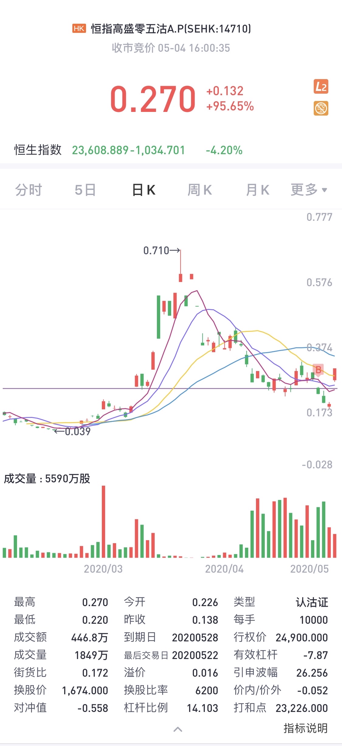 $恒指高盛零五沽A.P(14710)$