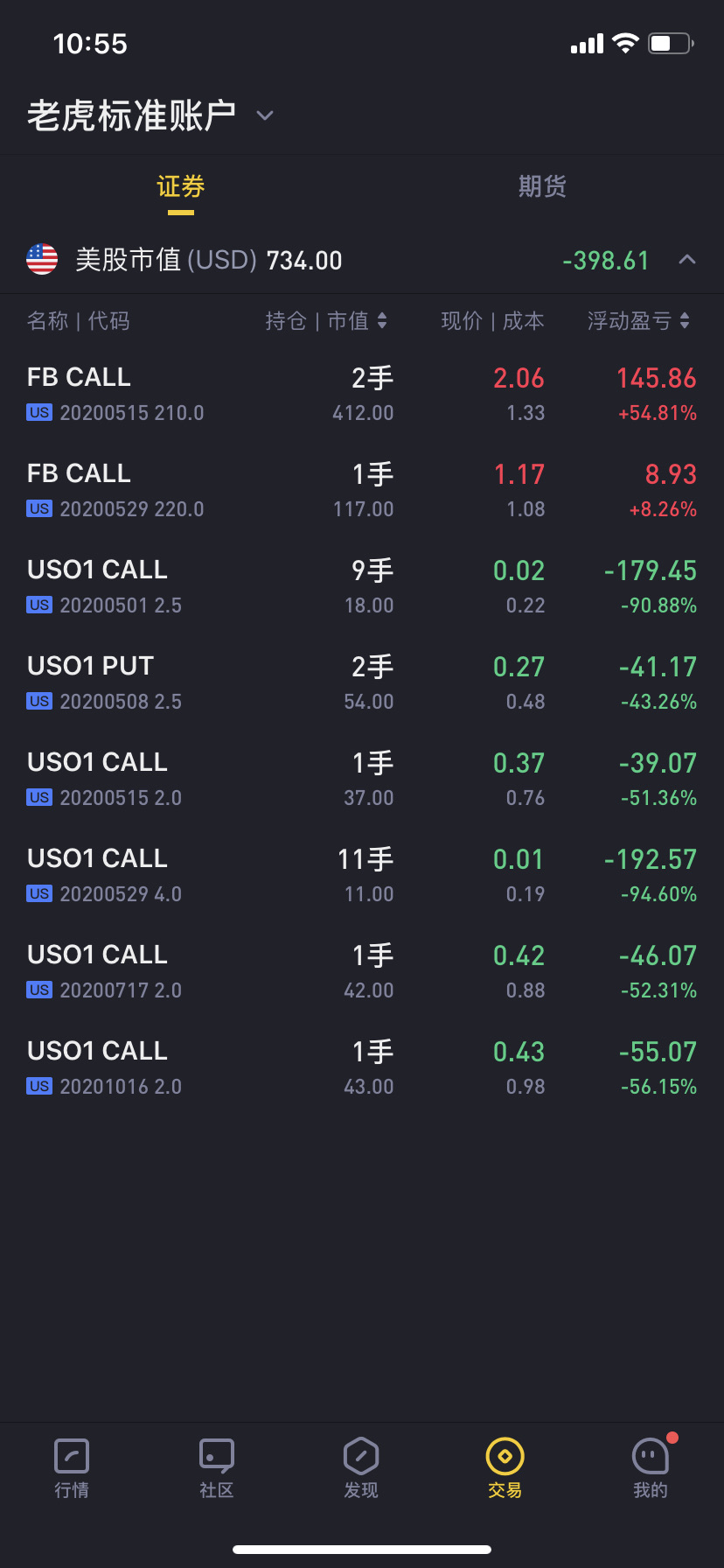 $美国原油ETF(USO)$老虎坑人啊,期权链接乱跳,还不能交易开盘暴涨成本价行权价一片混乱,一会暴涨一会暴亏,交易链接还错误!技术不行啊!现在都不知道我是什么成本价了,有图为证,开盘2.5call链接到1.5call一会链接到3.0call以为自己涨了百分200,然后提交订单不能交易!