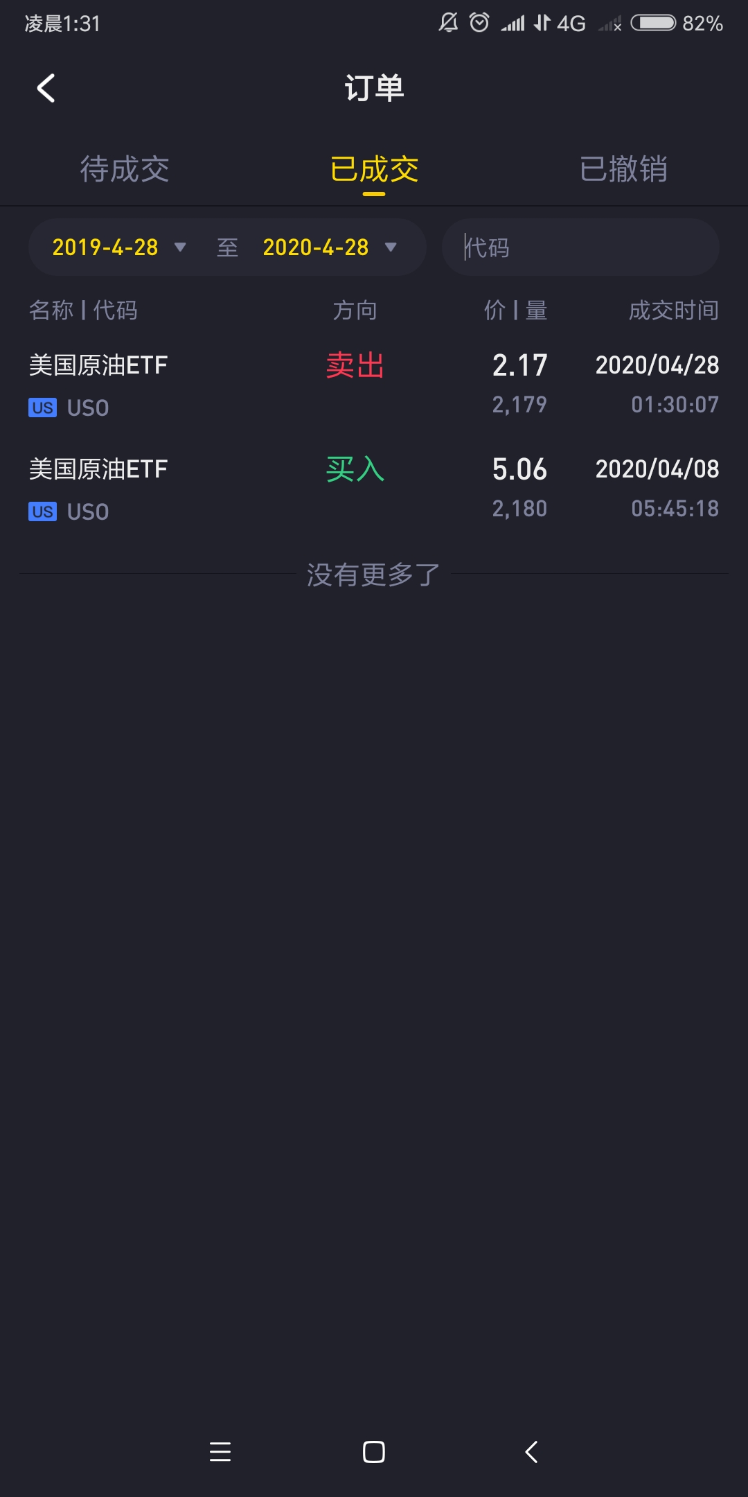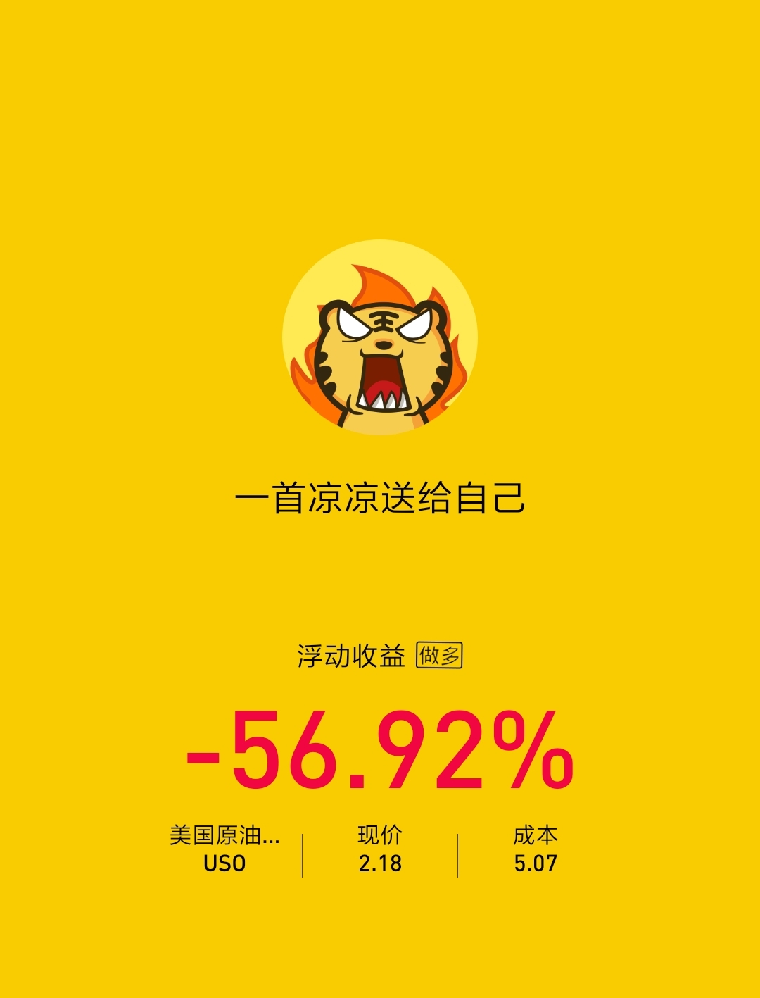 $美国原油ETF(USO)$第一次炒股,选的第一只股票,以亏损半数以上离场,本金1w刀,进场冲动,离场不冲动,之前盲目相信会涨回来回本,也牢记不要追涨杀跌理论,更信奉巴菲特"不要亏钱理论",所以直到现在才冷静卖出。