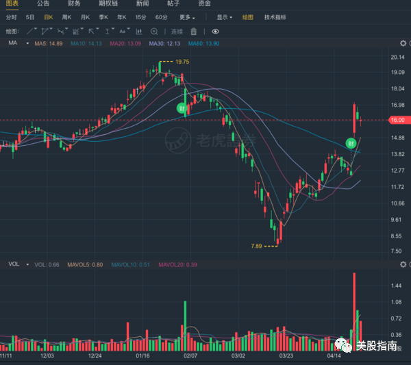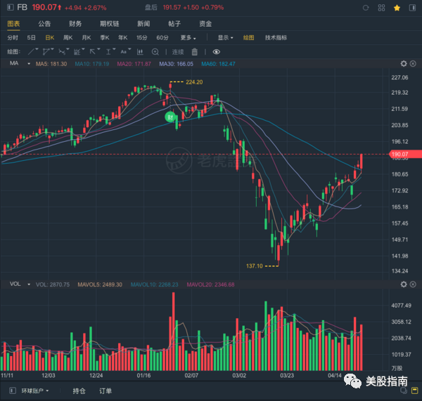 4月21号公布最新的财报: 收入没有明显受到疫情影响, 广告收入仍然正向增长, 当天晚上暴涨: 36.7%, 直接带动了社交板块暴涨。
