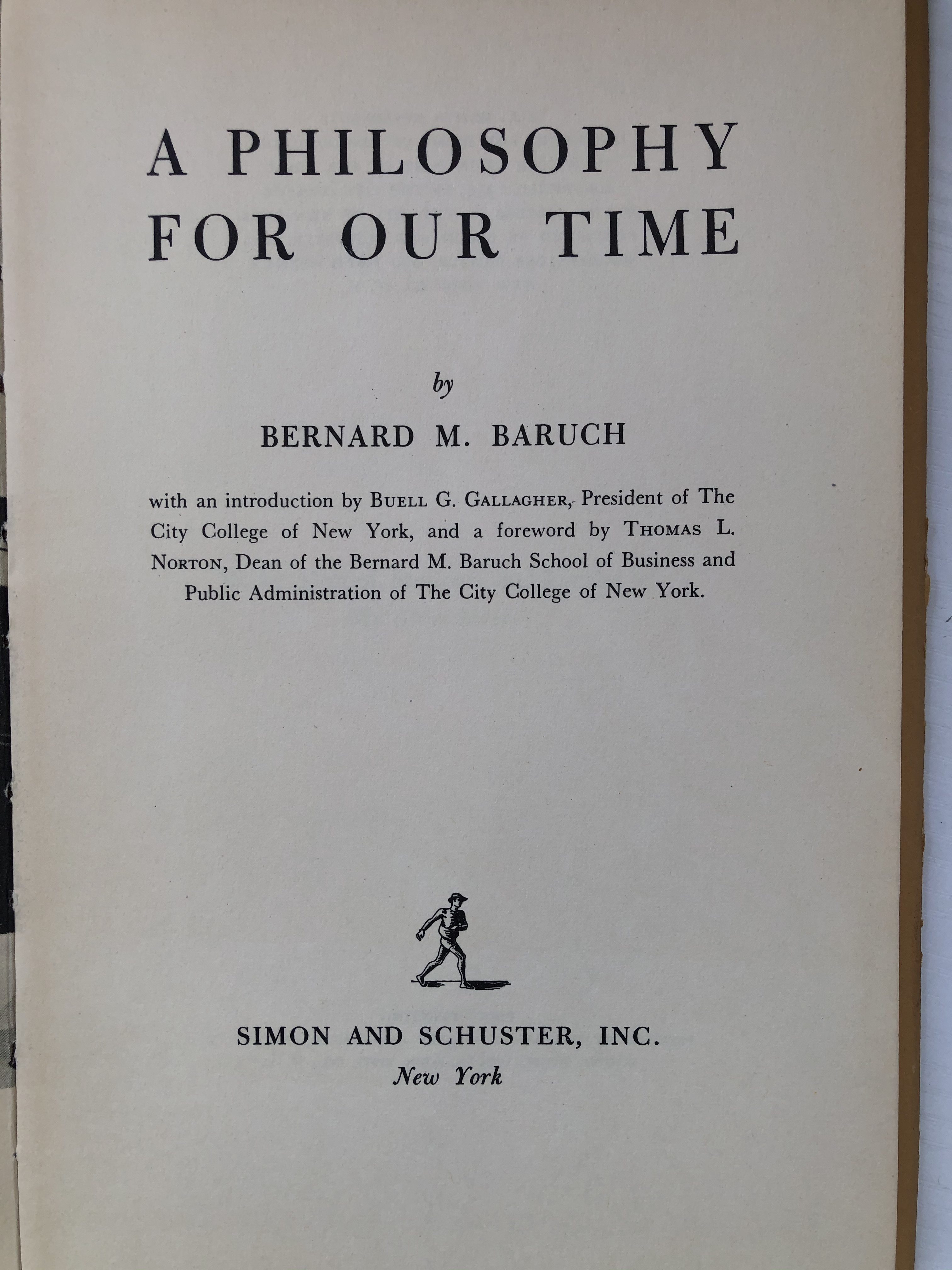 <<A Philosophy For Our Time>>伯纳德•巴鲁克的演讲录。巴鲁克是华尔街著名的大投机家。他曾经写过三本书,<<My Own Story>>,<<The Public Years>>,和是开篇提到的那一本,这一本是他一生思考精华的汇集,书中关于证券和投机的内容比较少,更多的是关于生活,公共事务和哲学的思考。读完这本书你会被巴鲁克的思想和才华折服,以及会使你对人性的理解更深刻。