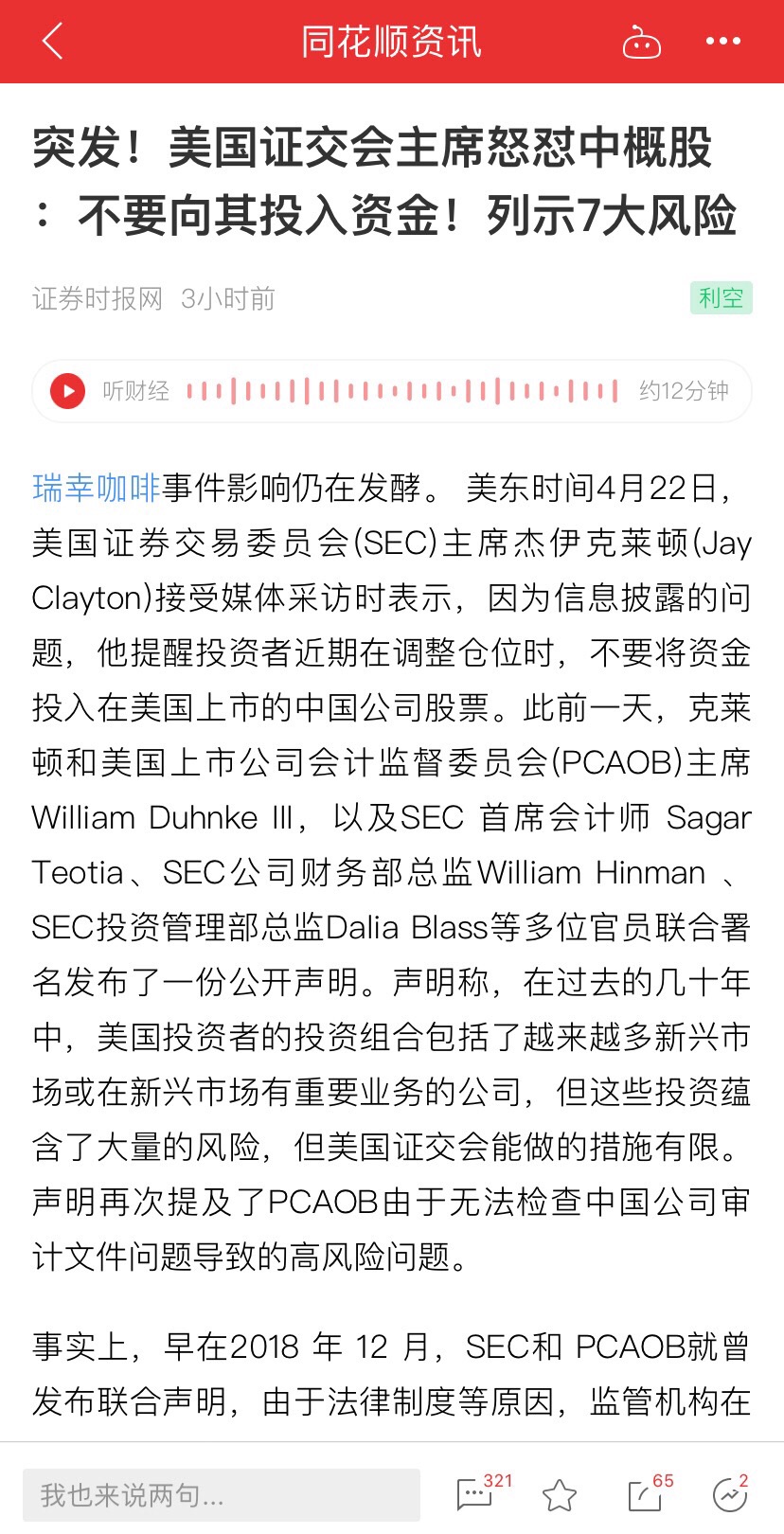 $Zoom(ZM)$基本面分析..1,隐私漏洞隐瞒,被爆出后才承认错误,承诺改正,说明早就在撒谎,公司诚信有问题,很难让人不怀疑其他业绩数据的水分。2资料回传大陆,服务器在北京,没有透明度和不明动机,难以洗脱嫌疑。在全球追责疫情起源,多国发起索赔的氛围下,其形象比恐怕比其他中概股更中概股。3,关于中概股的警告说明下一步可能会有大动作。美,台,新已陆续禁用,估计后续还有政府陆续跟进形成趋势。4,这个时候放出用户数暴增的信息,很可能是风雨欲来,先知先觉,放烟雾弹掩护资金撤离。