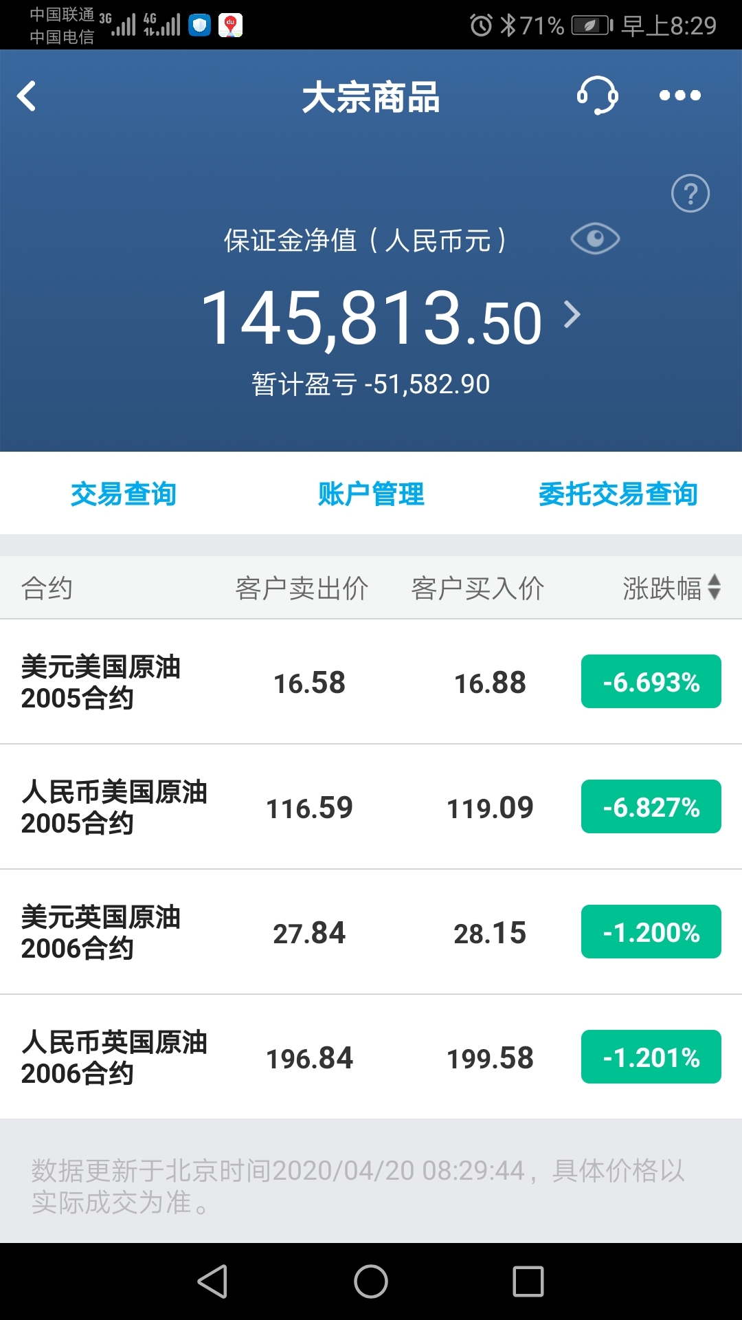 搞了国内的,以为早上开盘就会爆仓呢,结果,开盘还留点渣渣,立刻止损离场了。更加没想到的是晚上wti05已经跌到了10块,跑是正确的选择啊。
