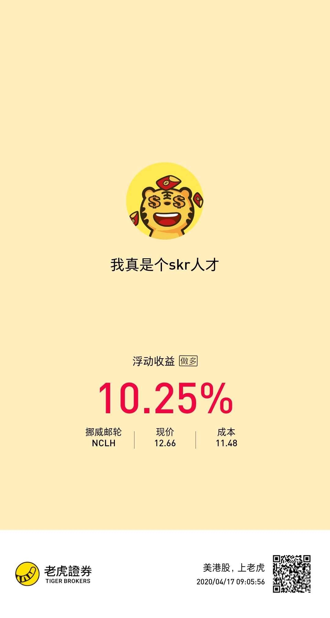 昨天晚上第1次买邮轮股,运气还不错吧~