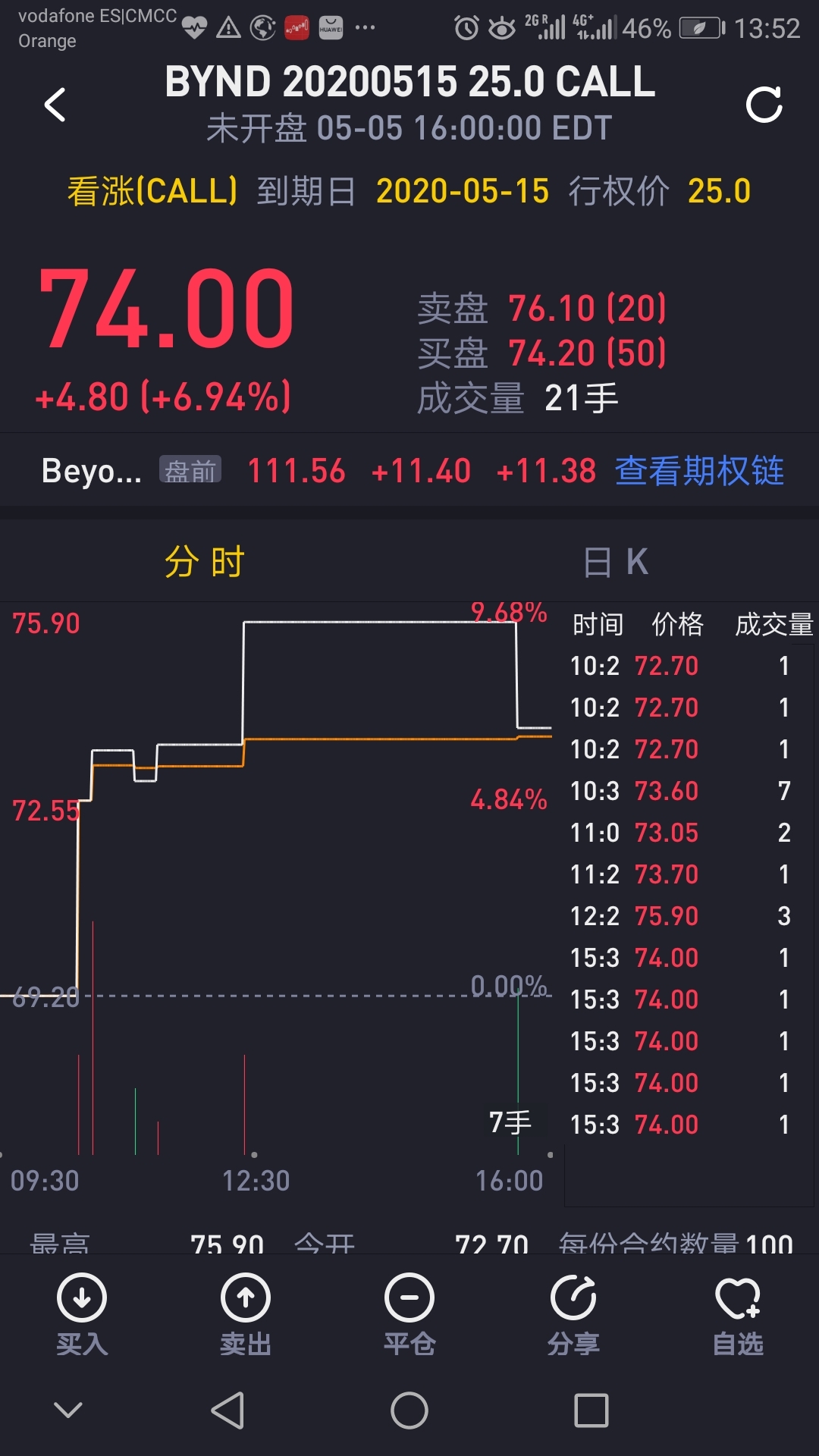 我是小白,刚刚接触期权就是想了解一下有关期权的知识。想问一下有经验的大神关于这张图里的数字,是不是如果我买一张看涨期权5月15号的,我要付7400刀的权利金,如果到期之前涨到120刀/股,那么我的利润就是12000刀,再减去(74+25)x100=9900剩2000刀利润?我这样理解对吗?请指教。