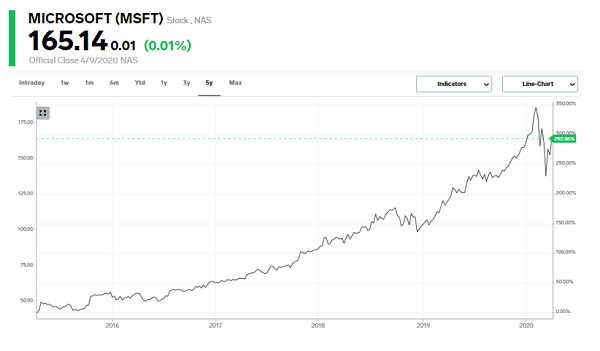 曾经PC时代的王者,在移动互联网时代的手机终端没有能占得一席之地。很多人觉得微软的时代已经过去。然而你要是看一下微软过去5年来的股价,会发现这家公司仍然处于高速发展的阶段,过去5年股价增长了300%。市值超过12500亿,全球第一。