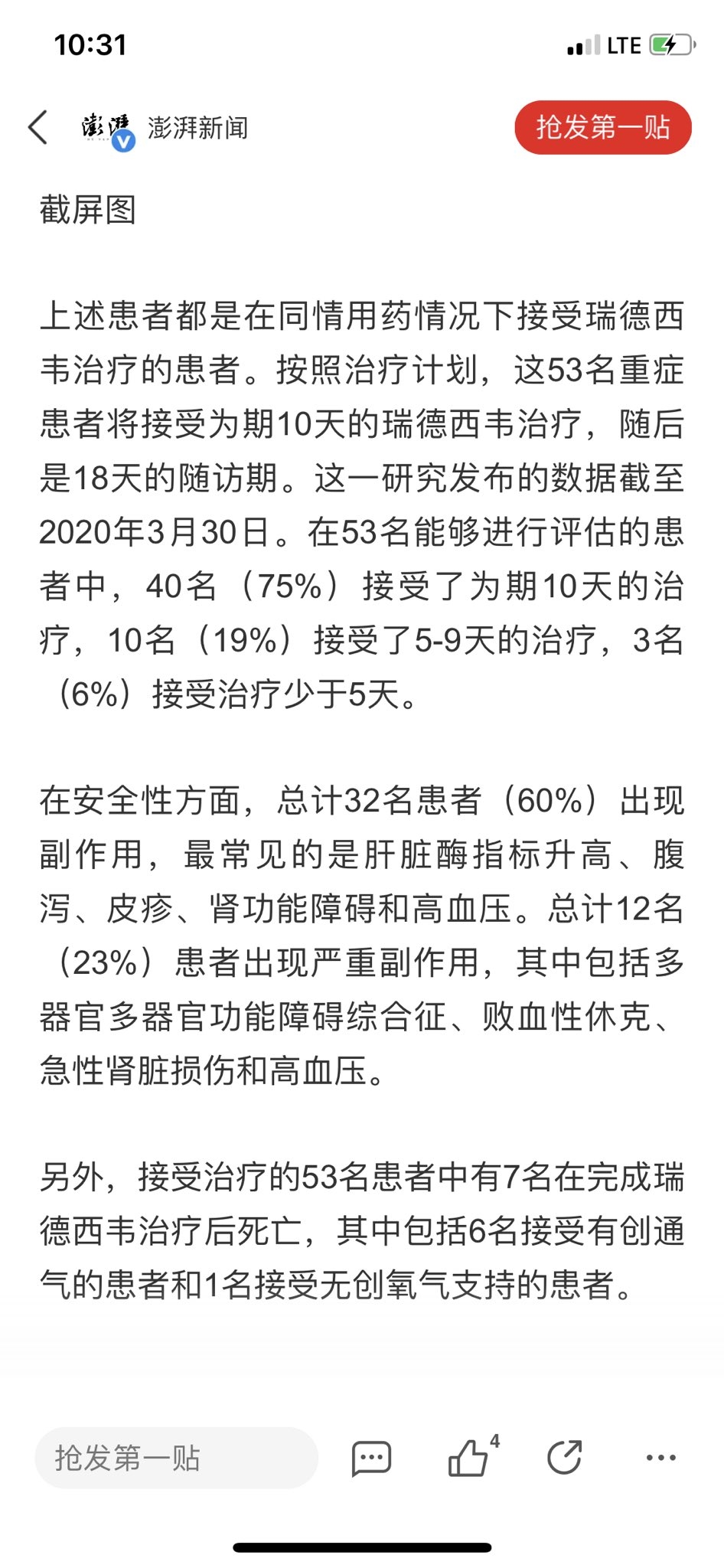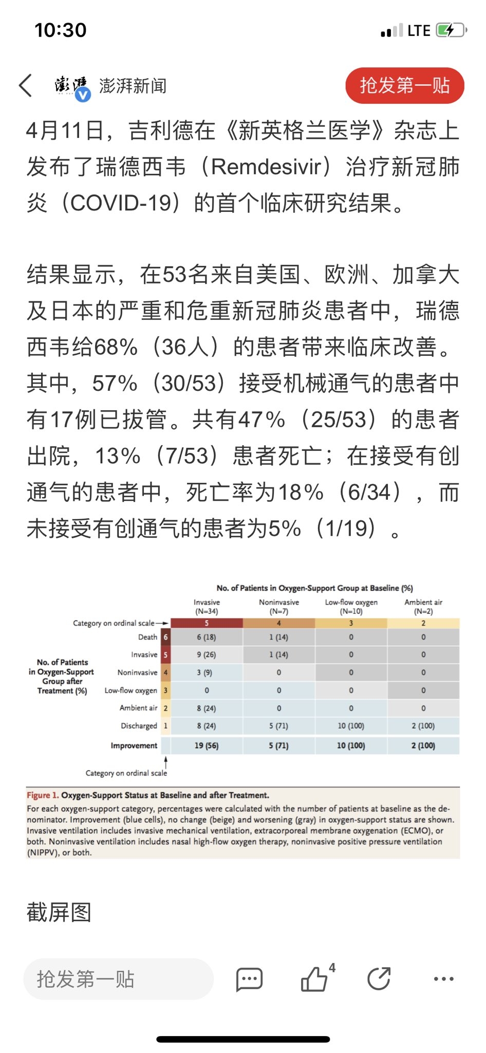 通常上了呼吸机就是九死一生了,这个药算不错了。这些病例都还是别的药都是过不行才同情用药、用瑞德西韦的。早点用的话能救活的更多。这个股的庄很厉害,怎么解读得看庄。这是最不好说的。