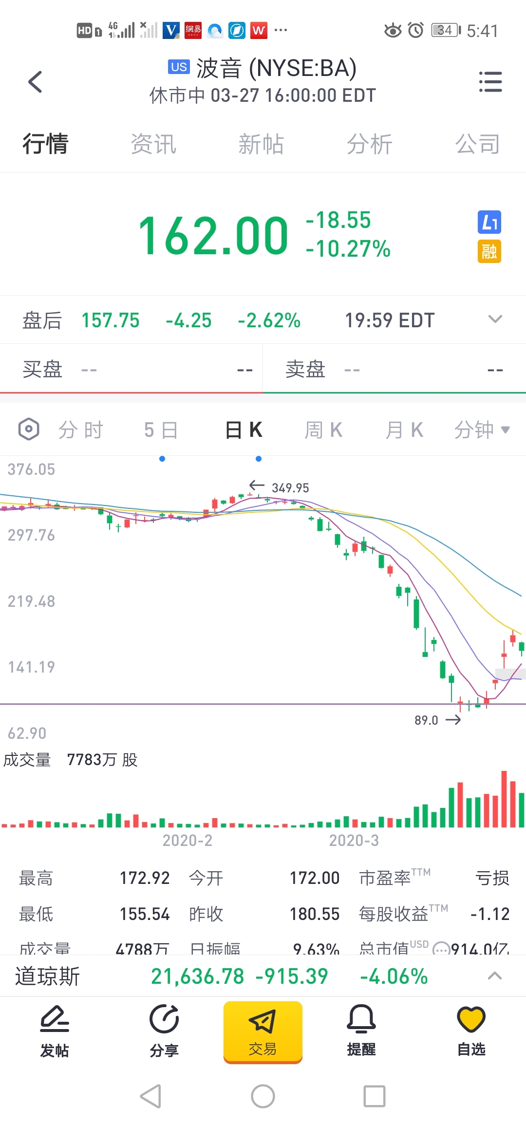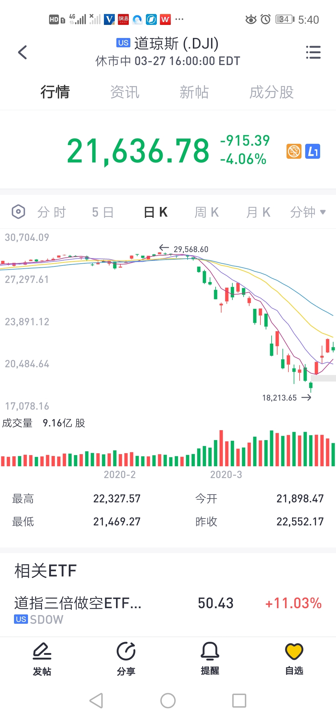 不仅仅是指数的下跌,也拖累了个大成分股以及航空股,如达美航空和美国航空、苹果$达美航空(DAL)$$美国航空(AAL)$$苹果(AAPL)$,某投行的消息发出,这将可能是美股的“回光返照”,如果是“回光返照”美股三大指数将会在一次达到最高点,后在继续下跌,而“回光返照”的下跌将会达到30~60%的跌幅,而这跌幅将会是毁灭的打击,一旦美股的受到如此之大的冲击,这对全球经济将是短暂而不可逆的伤害,而经济的复苏要多久呢,此次的复苏可能需要1—2年的时间甚至更久。