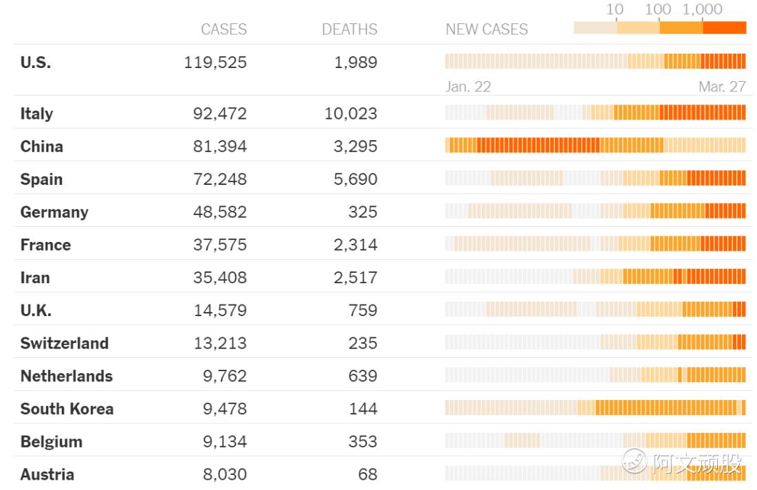 美国时间3/27:中国27天的高峰期(确诊人数达千人以上);义大利19天;美国10天;韩国31天(快筛);英国3天,以中国的防疫措施来看,我认为其他国家只会更久不会更快结束,至少还有2周的时间进行股市探底