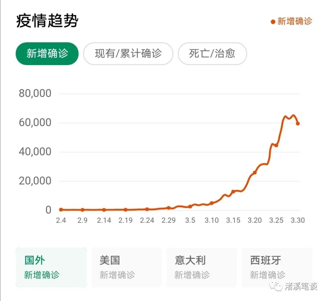 没有外网看数据麻烦了些,这个走势图还是刚出来不久的,现在国内报道国外疫情不是那么的积极每天新增数据只是看了个大概,没有形成系统的统计。