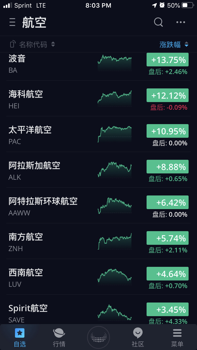 $联合大陆航空(UAL)$$捷蓝航空(JBLU)$$波音(BA)$$Spirit Airlines(SAVE)$$阿拉斯加航空集团有限公司(ALK)$$海科航空(HEI)$$道琼斯(.DJI)$