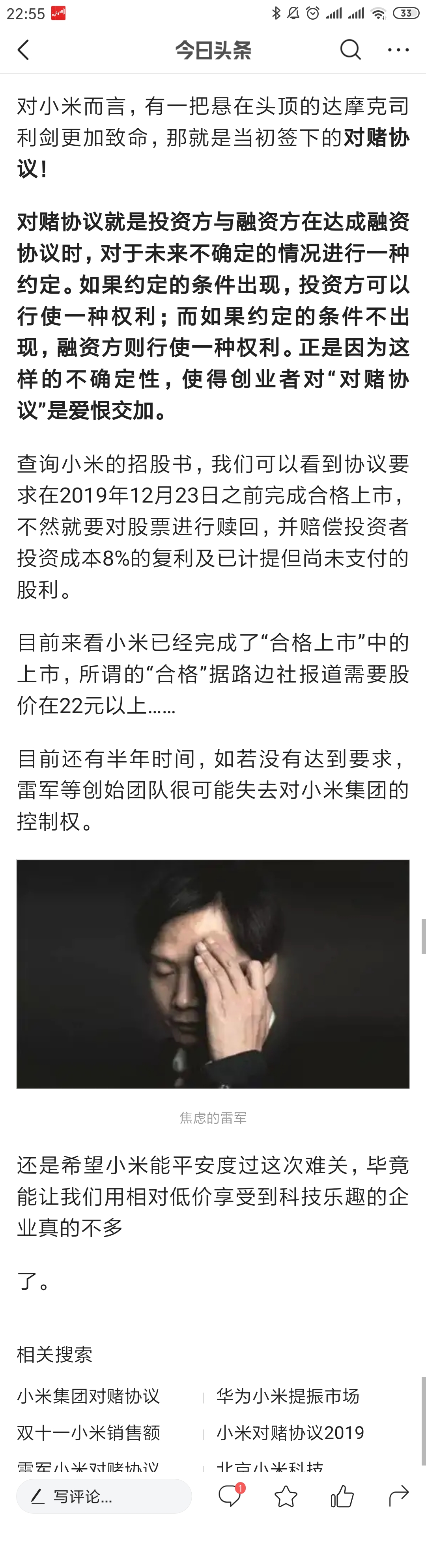 不过F轮融资只是10亿美元,或者是70亿人民币,如果要全部回购加上利息估计也就120亿人民币。这数目对于雷军应该是没有问题。特别是上市时发给他98亿股票奖励或许跟这个对赌回购有关系?