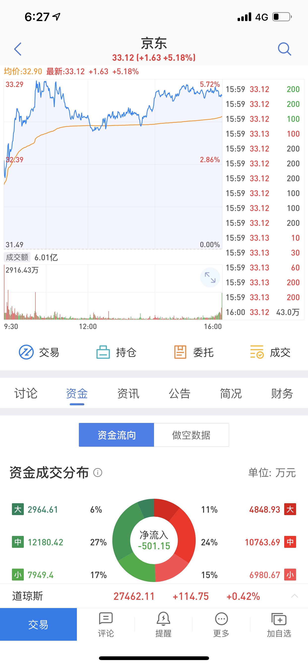 $京东(JD)$ 净流出500万,却涨了5%,警惕庄家出货!!老大老二打架,老三(京东)不见踪影,建议财报前,不买入不做空!