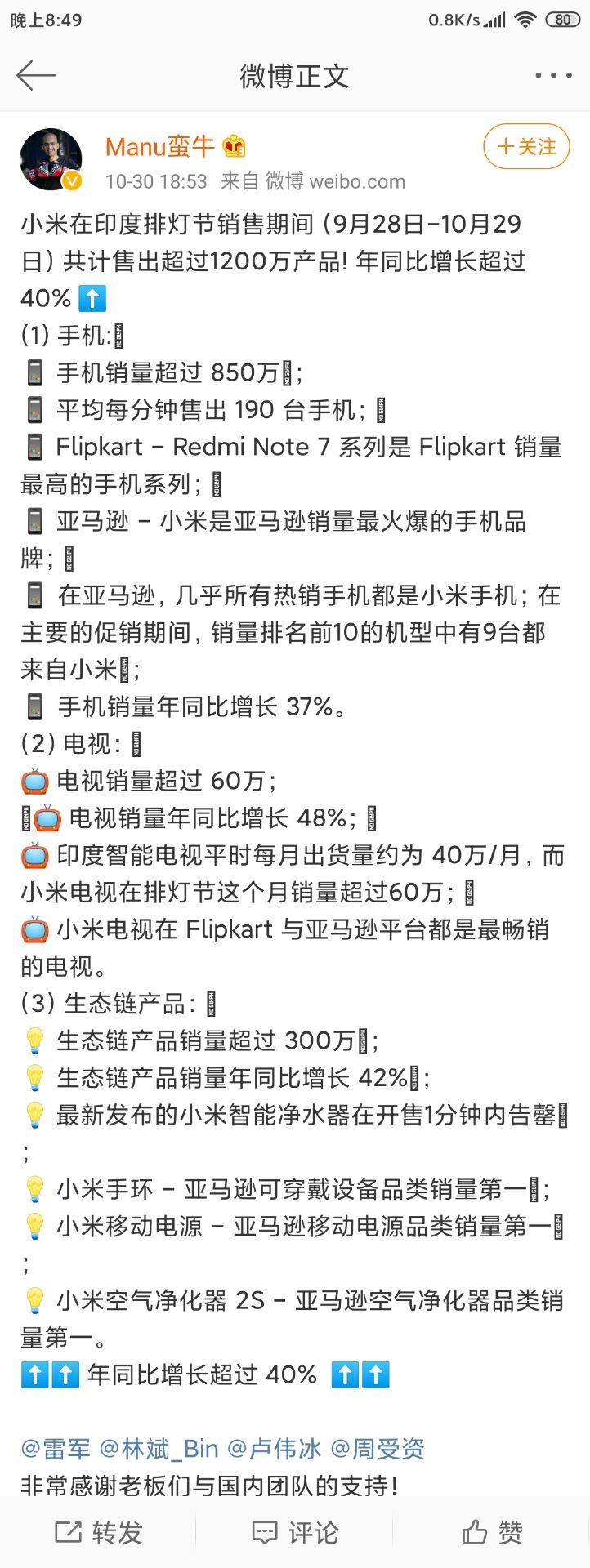 多半全是华为。小米手机的销量,现在有点儿可怜。