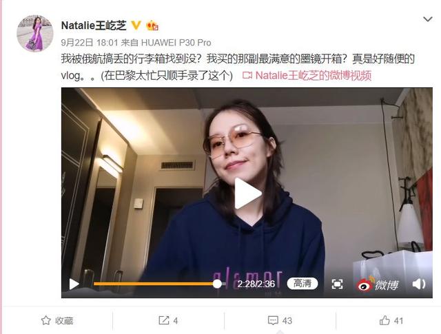 那个“人在巴黎,顺手拍个Vlog”中,王屹芝宣告她被俄航搞丢的行李找到了,并且还晒了晒自己刚在巴黎买到的一系列CHANEL,其中有一个全世界唯一的白盒CHANEL,还有个她认为今年买到最漂亮的墨镜,然后收获一堆疯狂吹好看的彩虹屁留言。