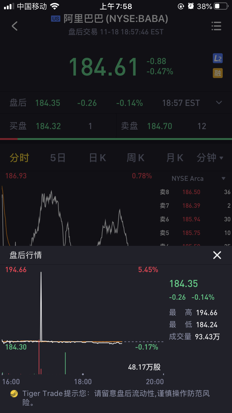 新韭菜? [捂脸]第一,不是你一个人在这个价位卖,要排队,全地球的人都在排队,第二,成交量,如果188成交了5股,你说能轮到你?
