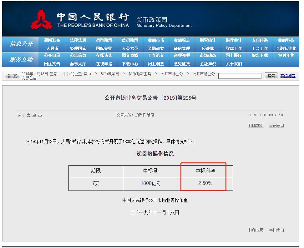 今日,央行发布消息称,7天期逆回购中标利率2.5%,较此前下降5bp,这是自2015年10月27日以来首次下调。