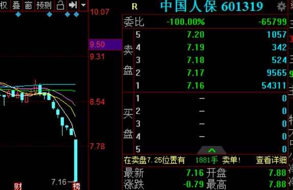 今天,保险板块全线上涨,唯独中国人保,开盘之后一度跌停。