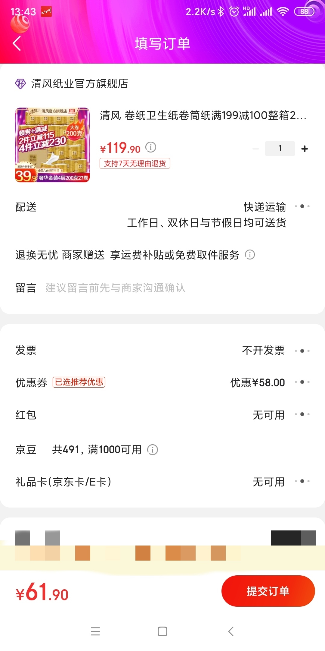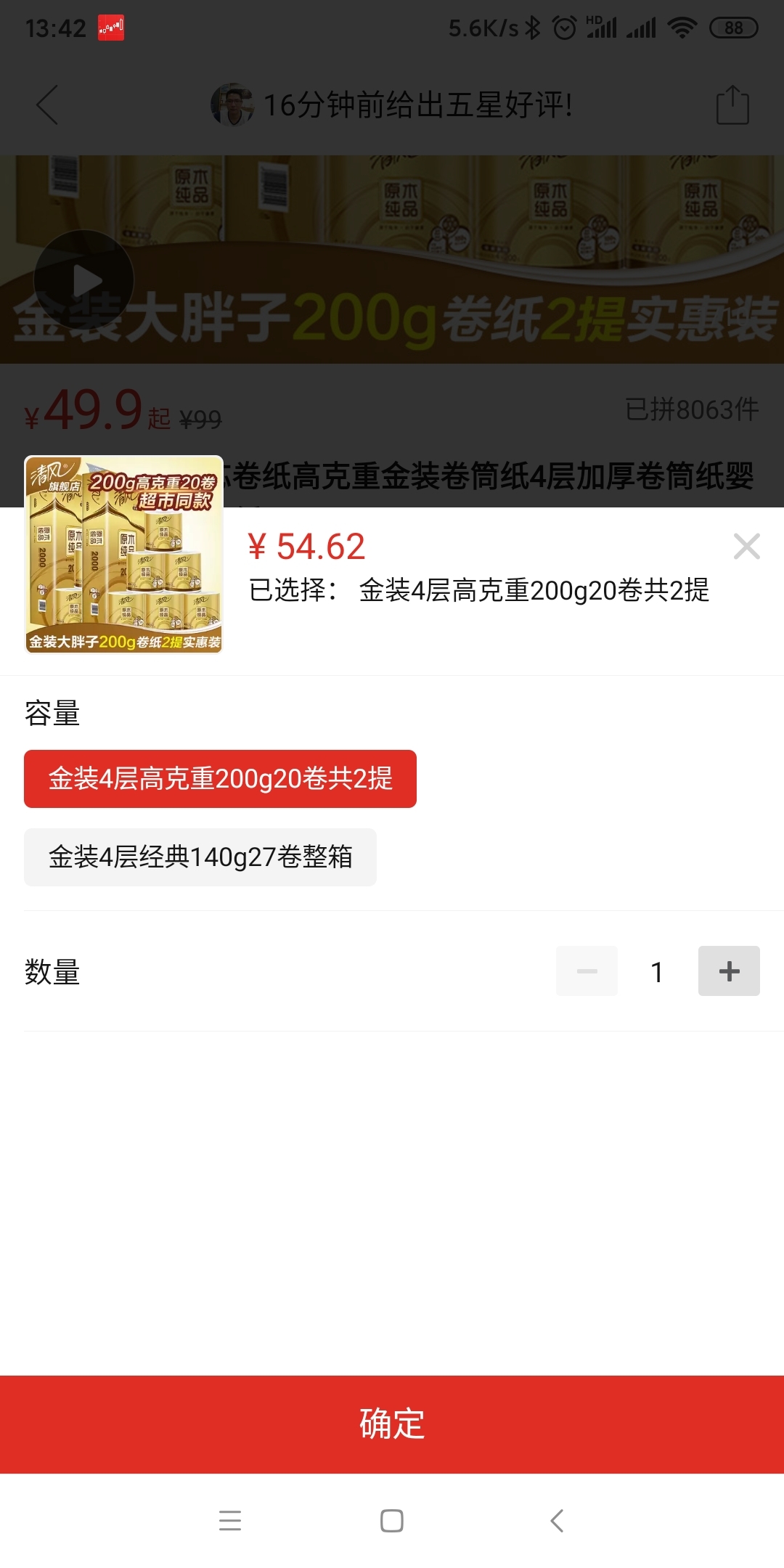 考大家数学的机会来了,第一个是拼多多,49.9元20卷,不知道为什么进到里面变54.62了;第二个是京东,61.9元27卷。