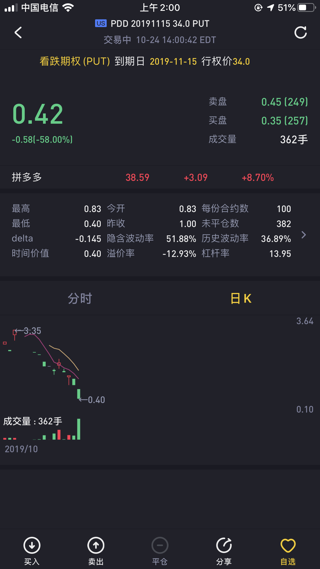 我10.18号put已经成废单了,他妈的跌成一分,这次我又继续p不相信它回不去,我p在34希望能到