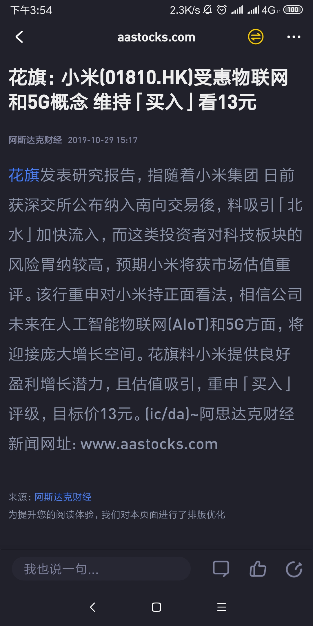 {"i18n":{"language":"zh_CN"},"detailType":1,"isChannel":false,"data":{"magic":2,"id":936550052,"tweetId":"936550052","gmtCreate":1572336872476,"gmtModify":1704724054122,"author":{"id":3492802581202701,"idStr":"3492802581202701","authorId":3492802581202701,"authorIdStr":"3492802581202701","name":"1868发了","avatar":"https://static.tigerbbs.com/4adb0d35b42d5dbd6ab392220d292720","vip":1,"userType":1,"introduction":"","boolIsFan":false,"boolIsHead":false,"crmLevel":1,"crmLevelSwitch":0,"individualDisplayBadges":[],"fanSize":5,"starInvestorFlag":false},"themes":[],"images":[{"img":"https://static.tigerbbs.com/76d3e9c7881c6d6c348db55681c0daa3","width":"1080","height":"2160"}],"coverImages":[{"img":"https://static.tigerbbs.com/76d3e9c7881c6d6c348db55681c0daa3","width":"1080","height":"2160"}],"extraTitle":"","html":"<html><head></head><body><span><span><a href=\"https://laohu8.com/S/01810\">$小米集团-W(01810)$</a></span></span> 花期重申买入评级<p><img src=\"https://static.tigerbbs.com/76d3e9c7881c6d6c348db55681c0daa3\" tg-width=\"1080\" tg-height=\"2160\"></p></body></html>","htmlText":"<html><head></head><body><span><span><a href=\"https://laohu8.com/S/01810\">$小米集团-W(01810)$</a></span></span> 花期重申买入评级<p><img src=\"https://static.tigerbbs.com/76d3e9c7881c6d6c348db55681c0daa3\" tg-width=\"1080\" tg-height=\"2160\"></p></body></html>","text":"$小米集团-W(01810)$ 花期重申买入评级","highlighted":1,"essential":1,"paper":1,"likeSize":10,"commentSize":0,"repostSize":0,"favoriteSize":0,"link":"https://laohu8.com/post/936550052","repostId":0,"isVote":1,"tweetType":1,"viewCount":472,"commentLimit":10,"likeStatus":false,"favoriteStatus":false,"reportStatus":false,"symbols":["01810"],"verified":2,"subType":0,"readableState":1,"langContent":"CN","currentLanguage":"CN","warmUpFlag":false,"orderFlag":false,"shareable":true,"causeOfNotShareable":"","featuresForAnalytics":[],"commentAndTweetFlag":false,"andRepostAutoSelectedFlag":false,"upFlag":false,"length":35,"xxTargetLangEnum":"ZH_CN"},"commentList":[],"isCommentEnd":true,"isTiger":false,"isWeiXinMini":false,"url":"/m/post/936550052"}