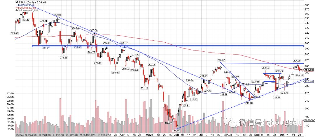 前提是:看TSLA日线,不宜跌破$295-$298区域。