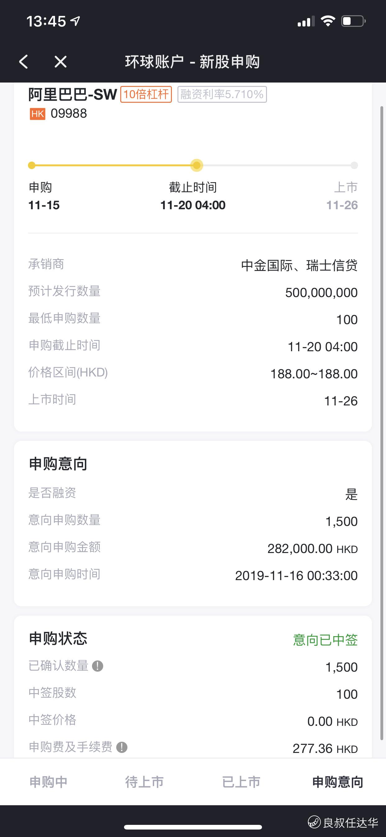 1500股中100 这中签率, 想当阿里股东真TM难啊🤮🤮