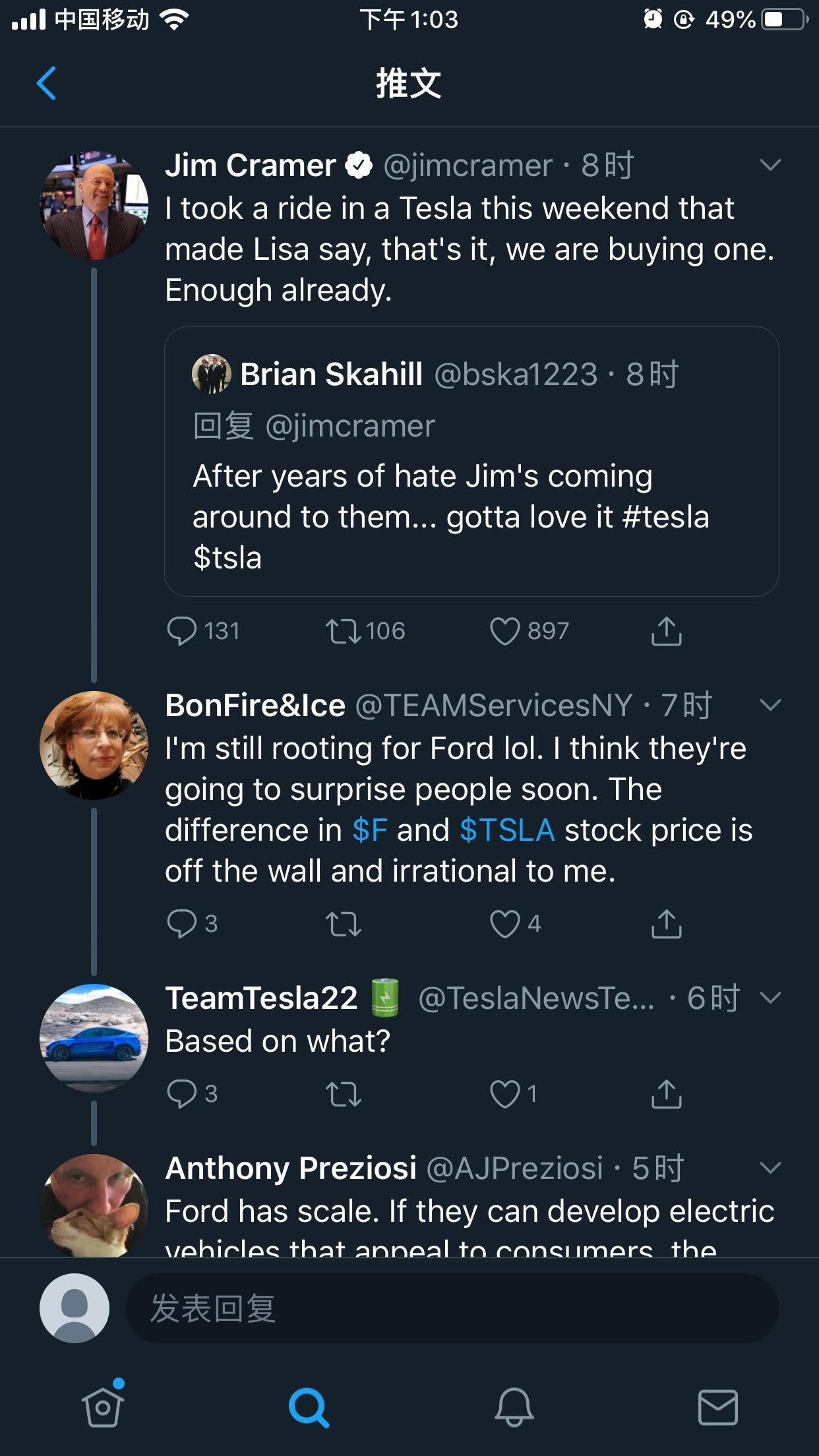 Jim Cramer,CNBC著名主持人,特斯拉长期大空头,今天下午和老婆去试驾特斯拉,当场决定购买Model X,并对特斯拉由空转多。看来空头转多头就是一次试驾这么简单。