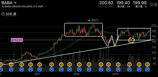 作为十几年的交易员,图像分析仍占我分析一支股票时进场时机很大的比重。而阿里巴巴也是今年操作还不错的股票之一。
