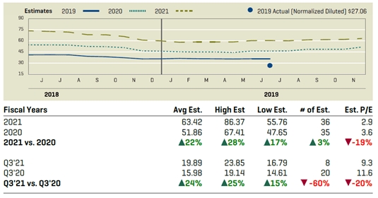 参考下表,华尔街分析师估计2020会计年度BABA的EPS为 $51.86美元;2021会计年度的EPS则成长22%到$63.42美元。现阶段的估值相比于过去平均确实比较低,所以在股价的资本利得上是有空间的,不过BABA的长期成长率也慢慢下降,建议定期关注市场对于BABA估值的变化。