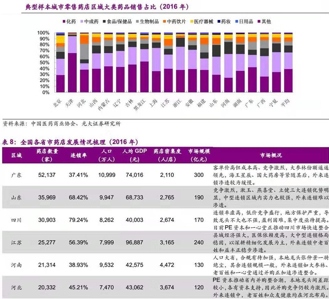 咱们先说说实体药店吧,药店具有零售业、服务业两个特点,在不考虑服务差异性的时候,各家药店卖出的药是同质化产品,那么就非常拼规模,获取规模优势,这个规模不是总的规模数字大小,而是区域市场内的规模密度,只有这样才能降低总体运营成本。