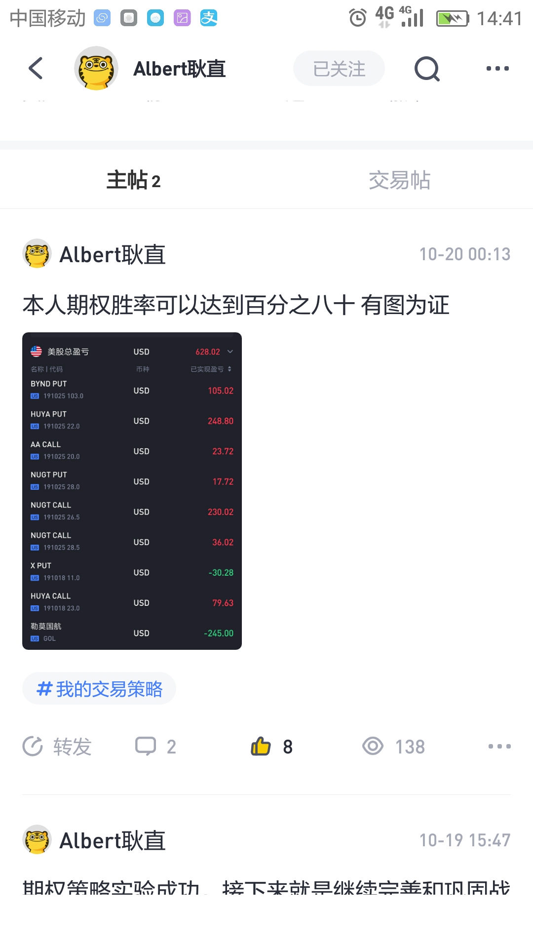 其实我想说的就是劝诫一下大兄弟别以为期权或者股票那么容易就能抓到胜多败少的窍门。其实就是运气而已,特别是期权,更像赌博!大伙儿还是小心些,心态飘了,就离破产不远了