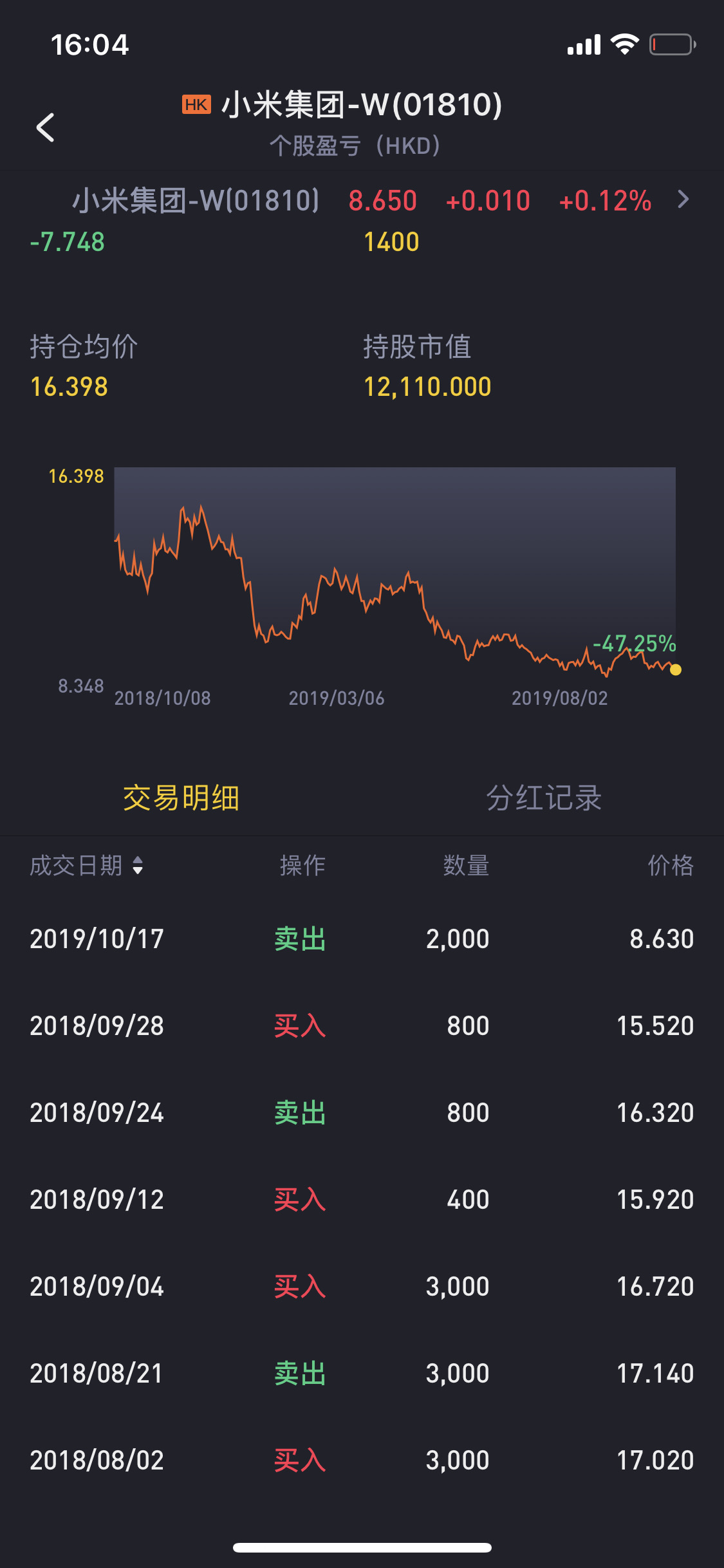 小米集团,年轻人的第一支股票,也是第一支腰斩股票,总期待有奇迹的发生,小米,再见!再也不见!垃圾!