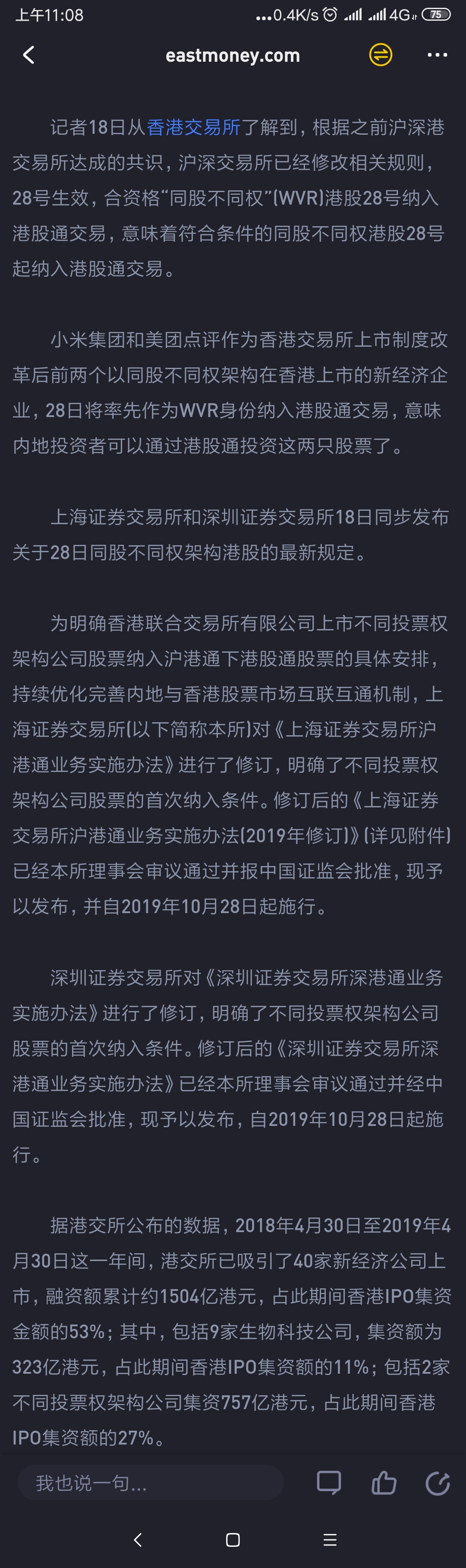 记者18日从香港交易所了解到,根据之前沪深港交易所达成的共识,沪深交易所已经修改相关规则,28号生效,合资格“同股不同权”(WVR)港股28号纳入港股通交易,意味着符合条件的同股不同权港股28号起纳入港股通交易。