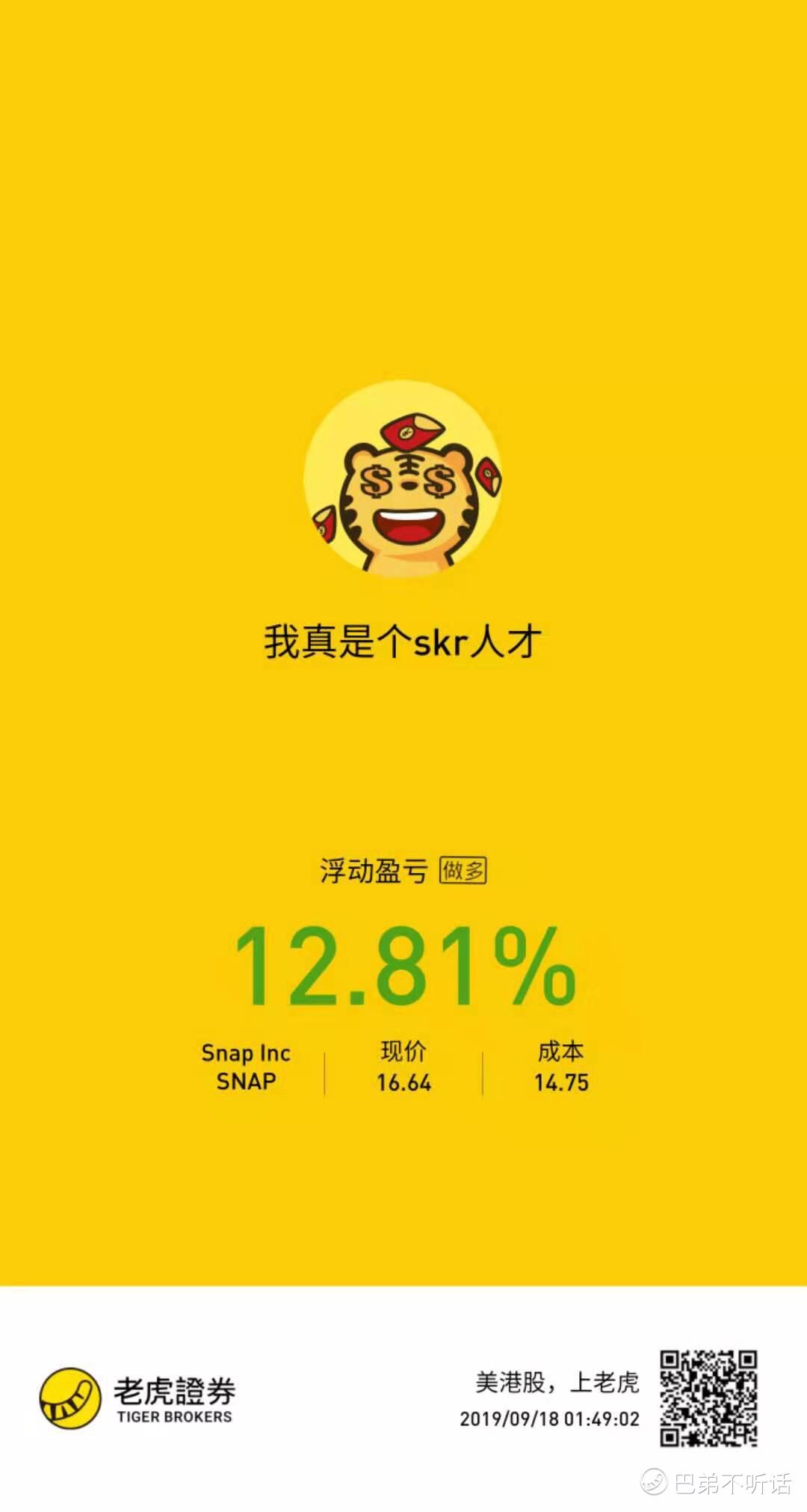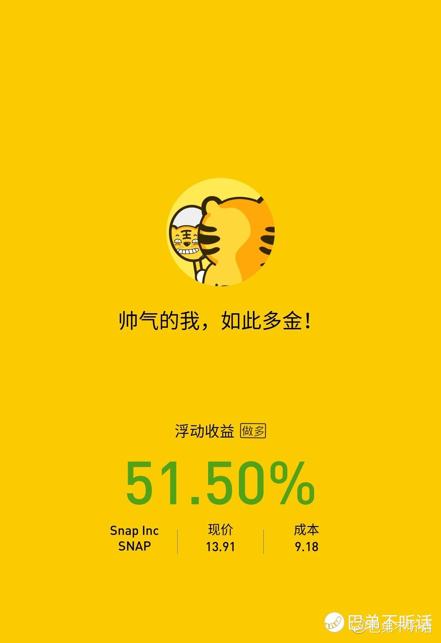 先放两张收益图,一张是我第一次交易这只股票的买入点,9.18买入,大概14.1平仓;另外一张是昨晚平仓的收益图。Snap是我收益最多的一只股票,前后大概交易了4次,每次收益都非常可观,坚定不移的做Snap这只股票,并不是对这款产品有多高频的使用情况,而且对产品形态有了一定认知了解后,发现这确实是一款富有创造性的产品,而做产品最重要的就是要勇于创新,Snap在这个创新这个方向上一直都是在第一梯队;再一点自己对这只股票观察时间是比较久的,几乎每个交易日自选上都会对它重点关注,对股价异动有自己的一定理解,在短视频的这个风口上,只要大方向没问题坚持做正确的事情,对短期内股价上涨的预期还是十分可观