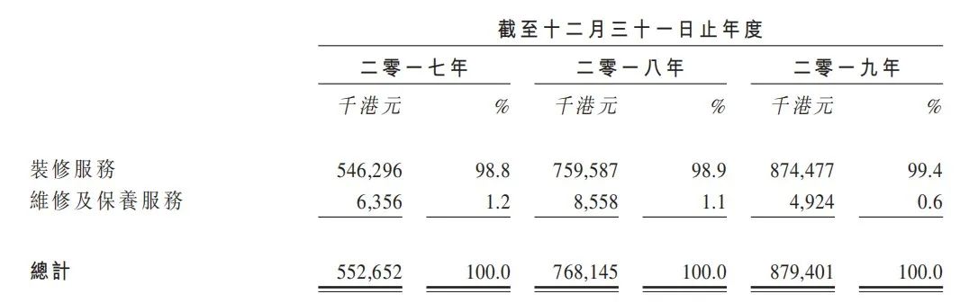 维修及保养服务主要涵盖对现有物业进行内部装潢部件升级、修复及改善及维修、替换或安装